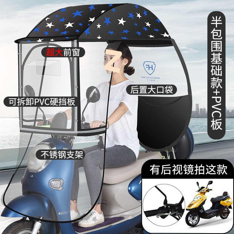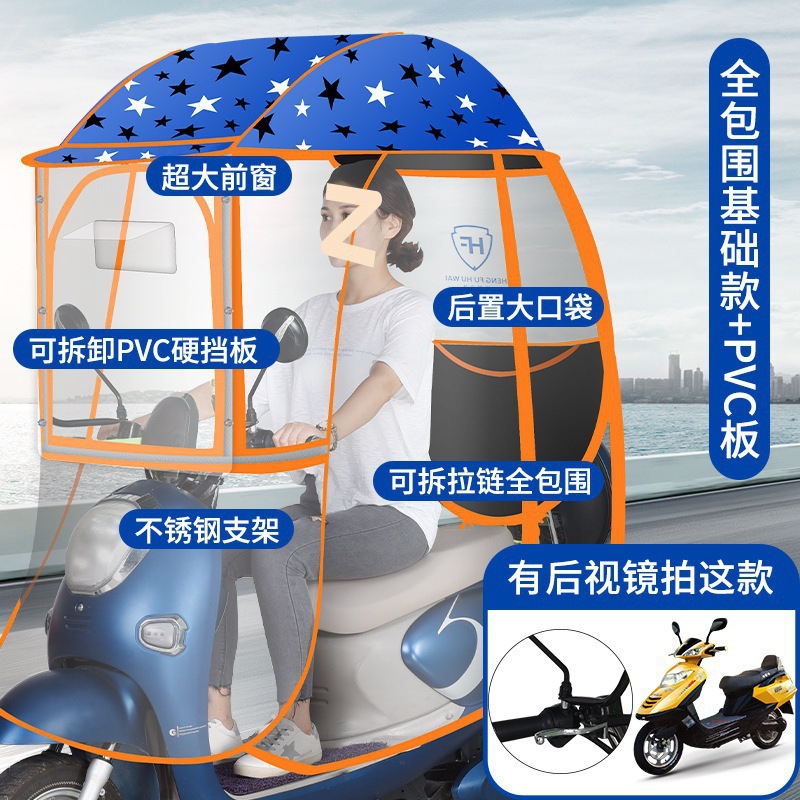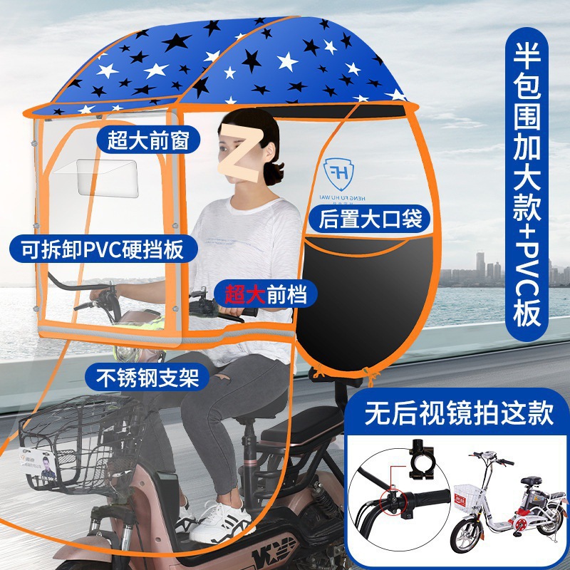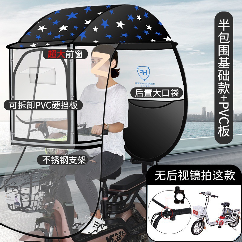 • 대형 창문 + 탈착식 하드 배리어 + 대형 전면 배리어 반 패키지 [블루 스타] 백미러 없음