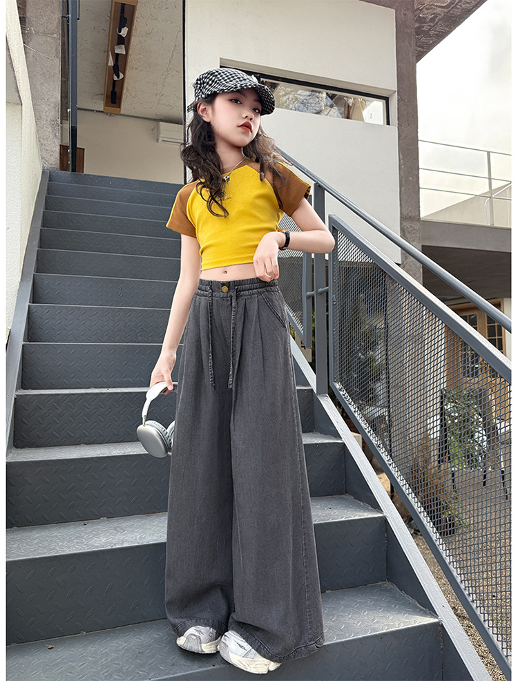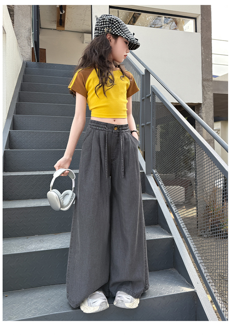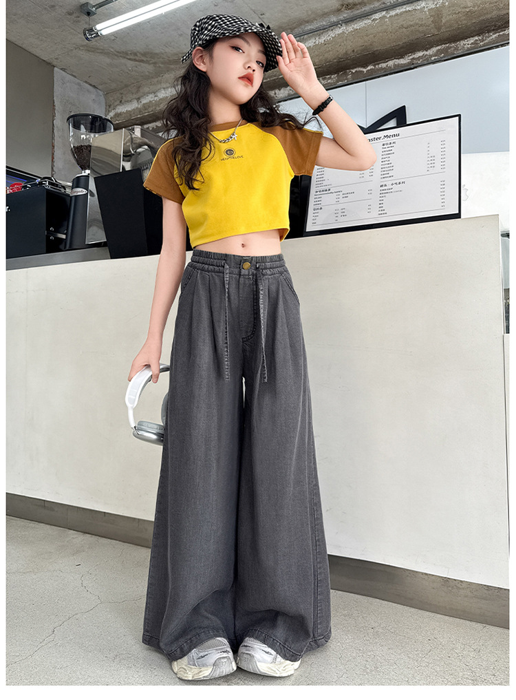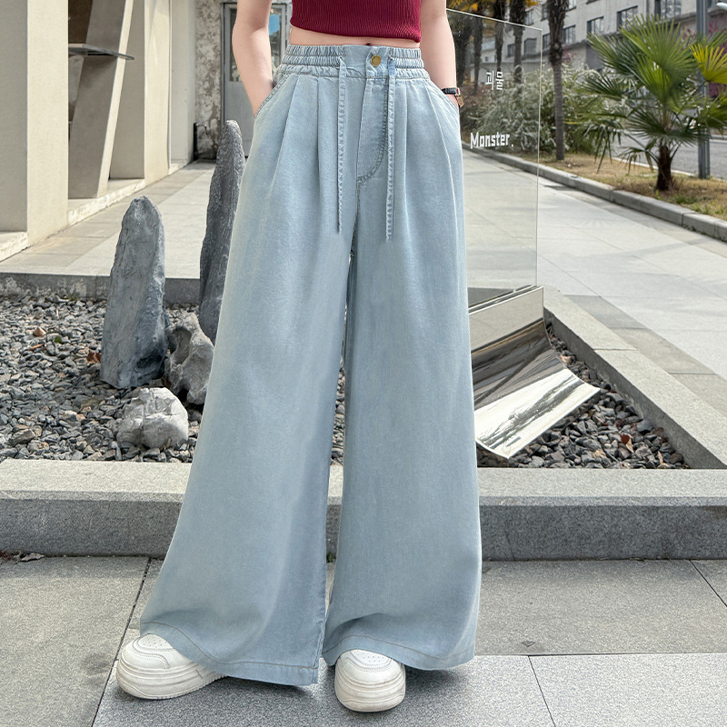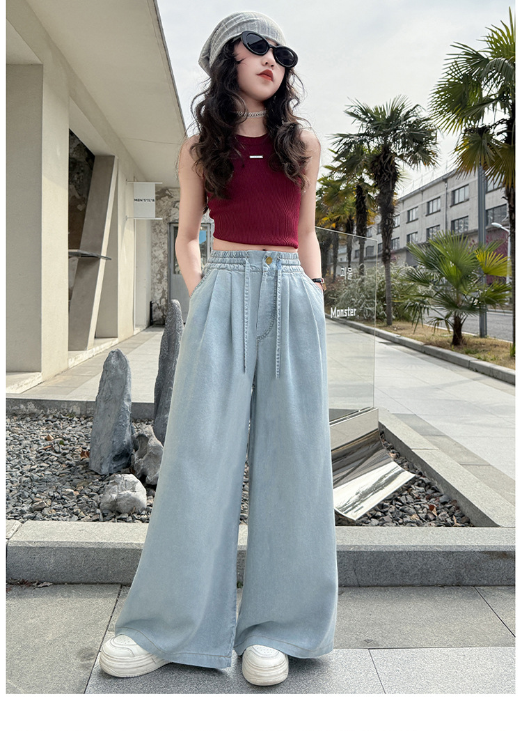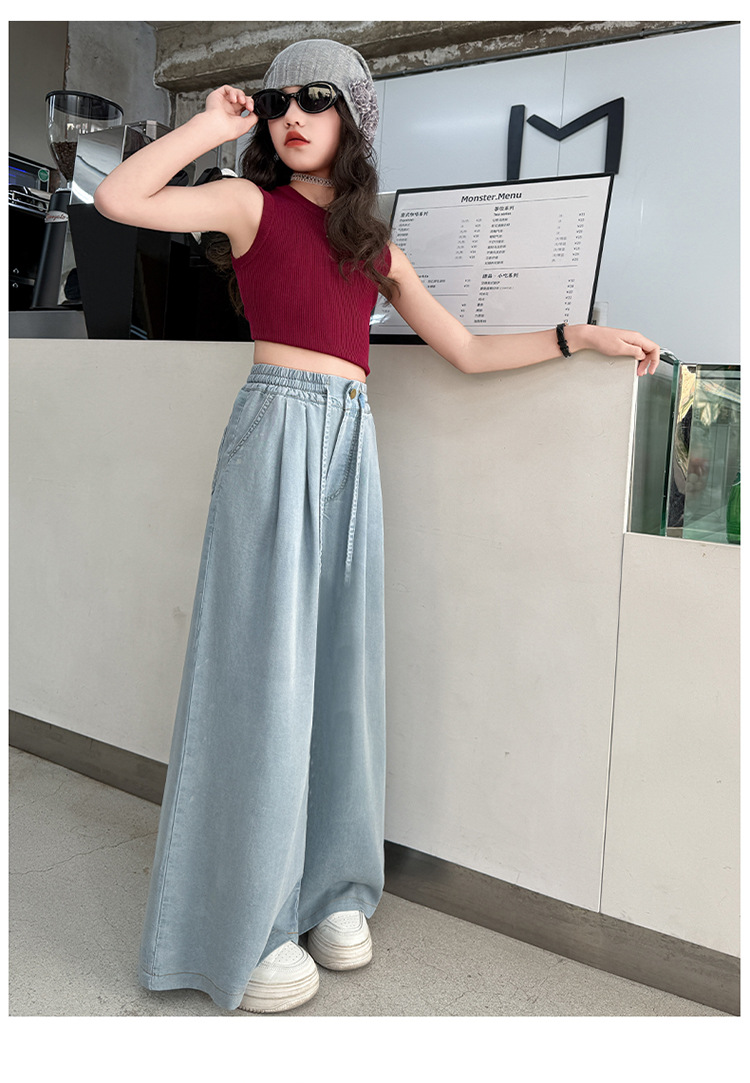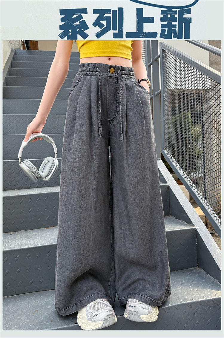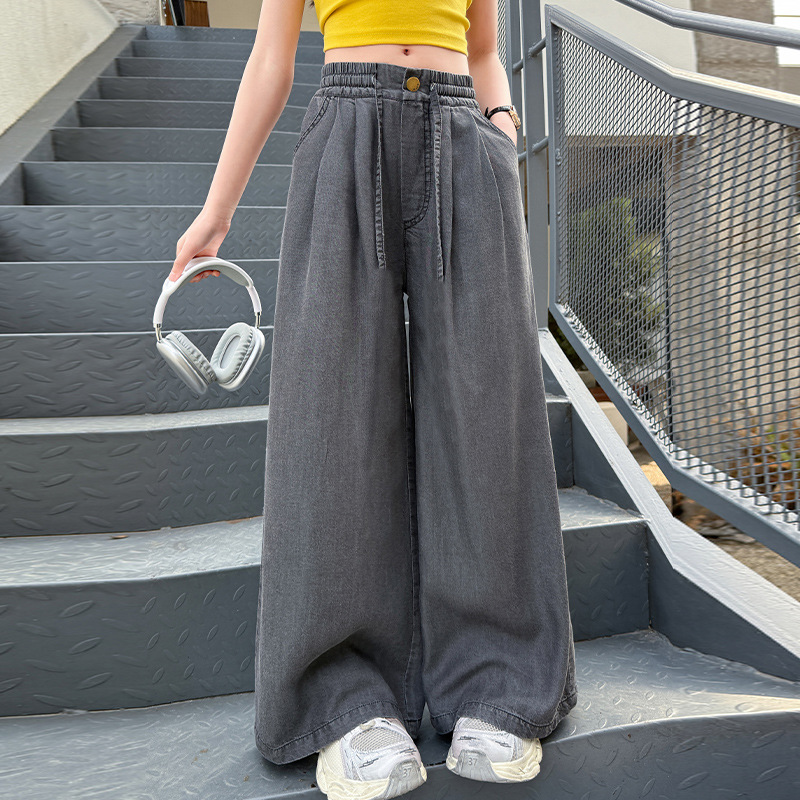 어린이 여름 신상 한국판 초박형 텐셀 소프트 청바지 2026 여아 중대형 아동용 루즈핏 와이드 팬츠스토어 가기
