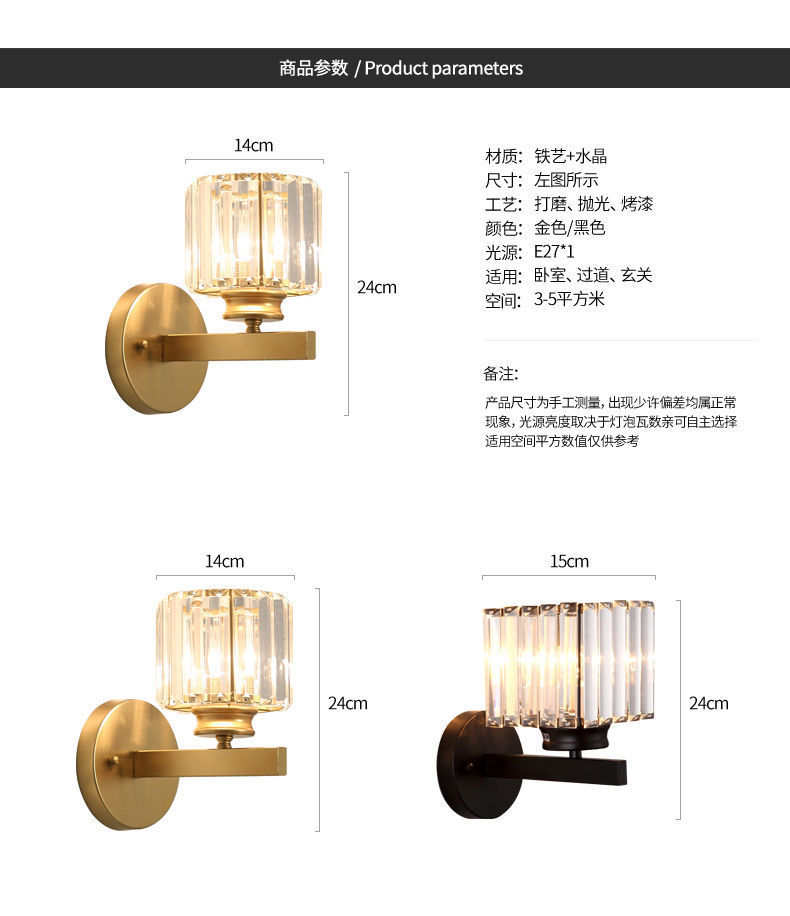 새로운 현대 간단한 침실 침실 램프 눈 보호 크리스탈 벽 램프 거실 복도 계단 램프