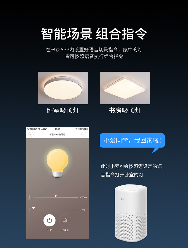 • (눈 보호, 깜박임 없음) 3색 조명 + Xiaoai 동급생 지원