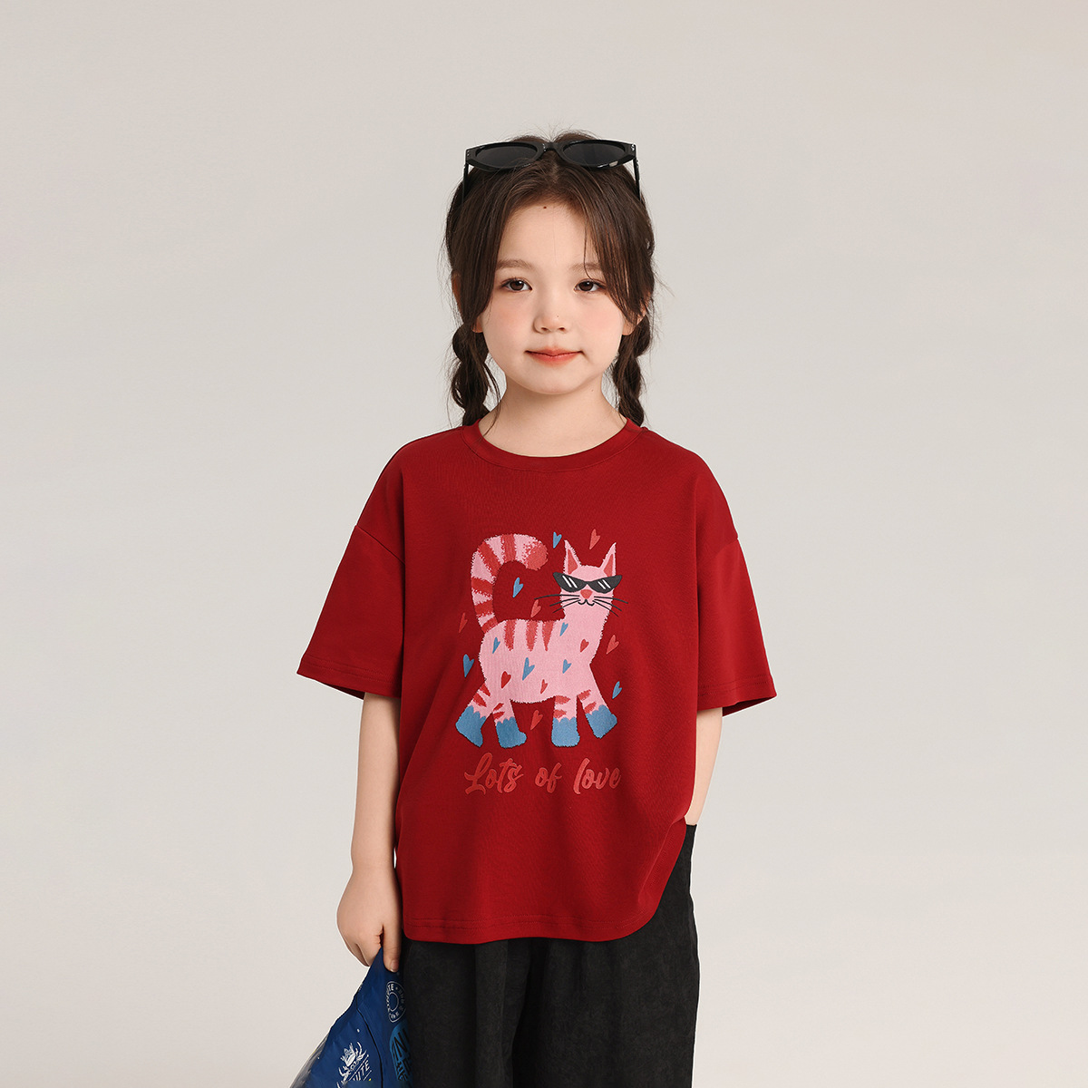 푸딩 하루 어린이 톱 2025 여름 새 여자 티셔츠 어린이 만화 인쇄 한국 느슨한 짧은 소매스토어 가기