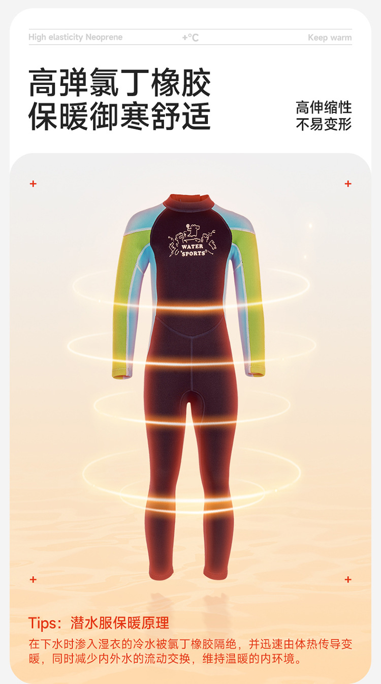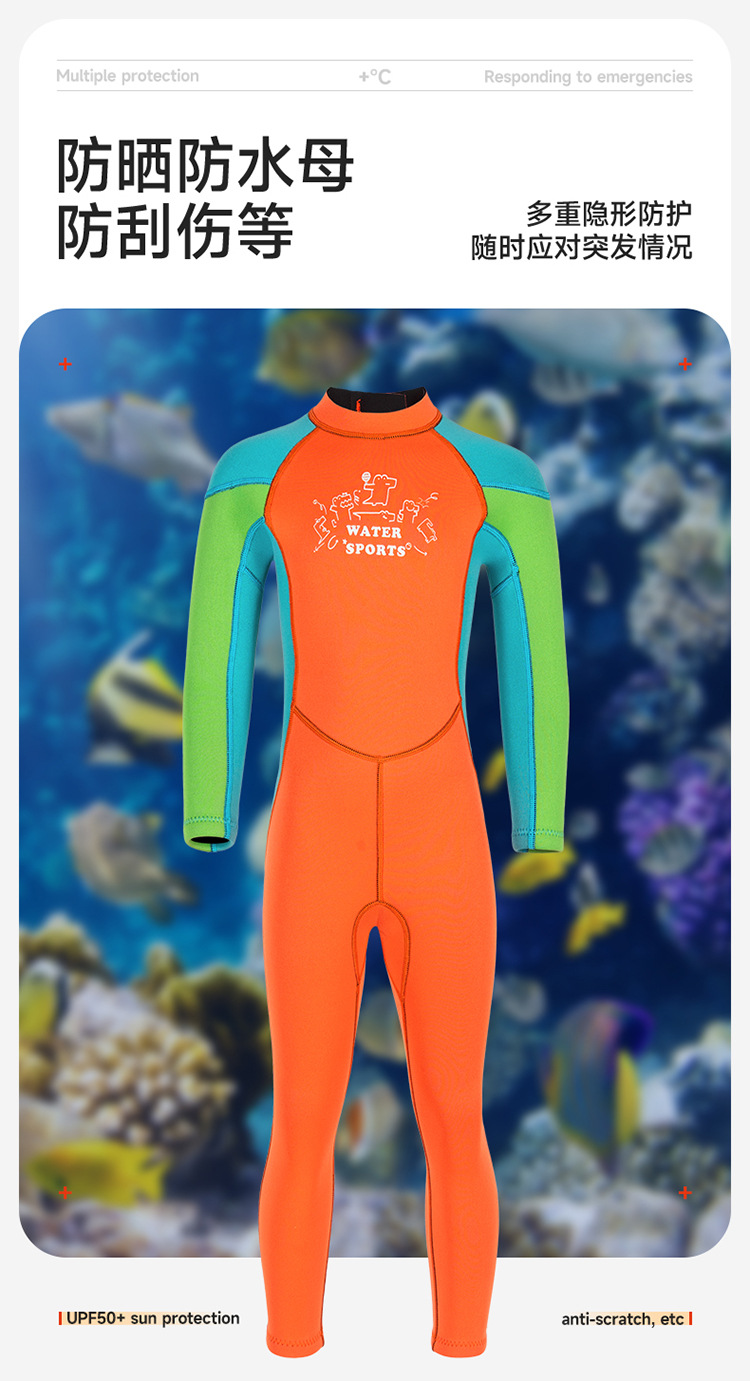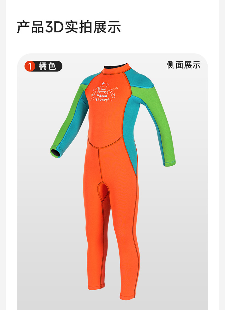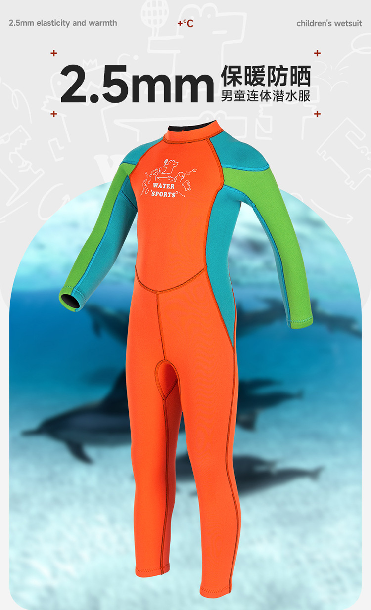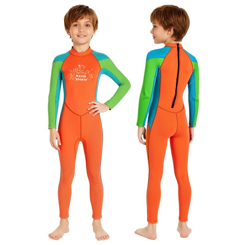 2.5mm 아동용 다이빙 슈트, 남녀공용 원피스 수영복, 보온 및 자외선 차단, 서핑 및 스노클링 슈트, 오렌지색
