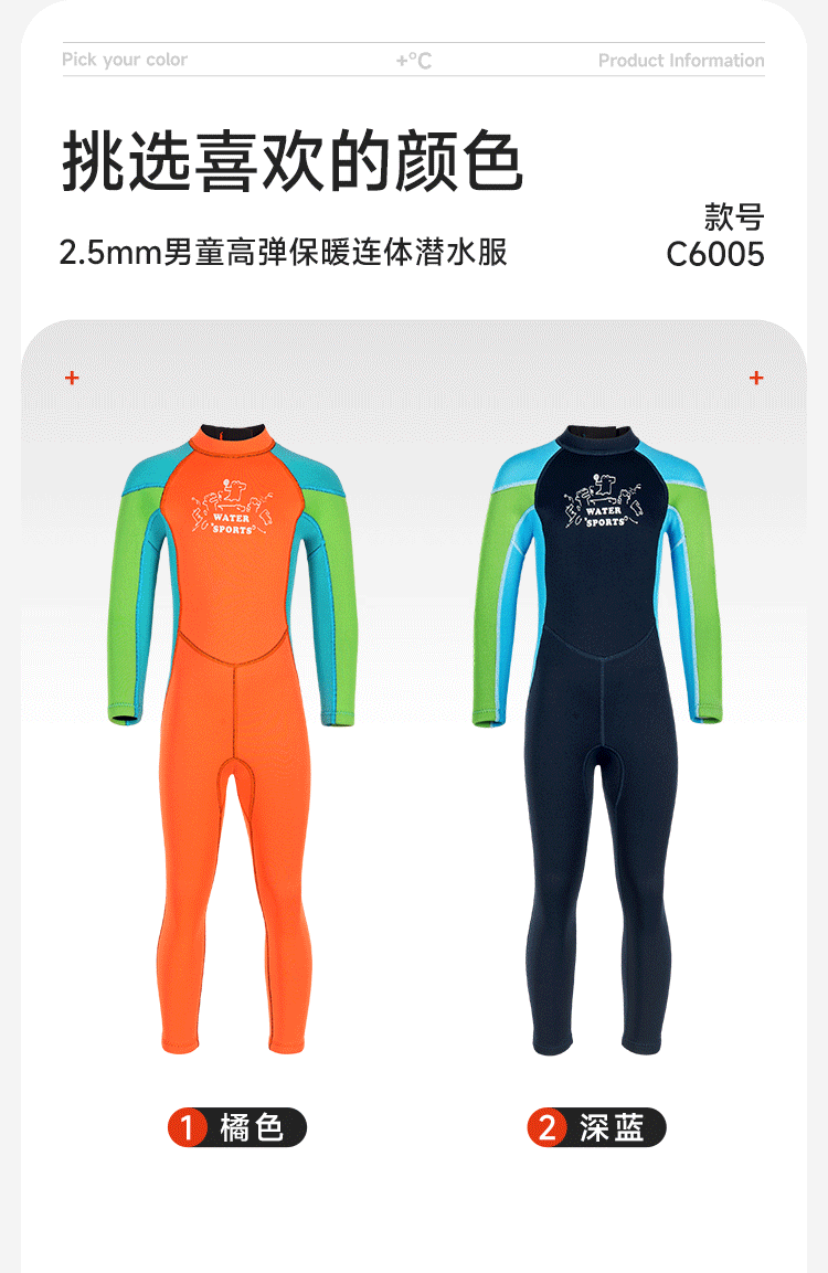 2.5mm 아동용 다이빙 슈트, 남녀공용 원피스 수영복, 보온 및 자외선 차단, 서핑 및 스노클링 슈트, 오렌지색스토어 가기