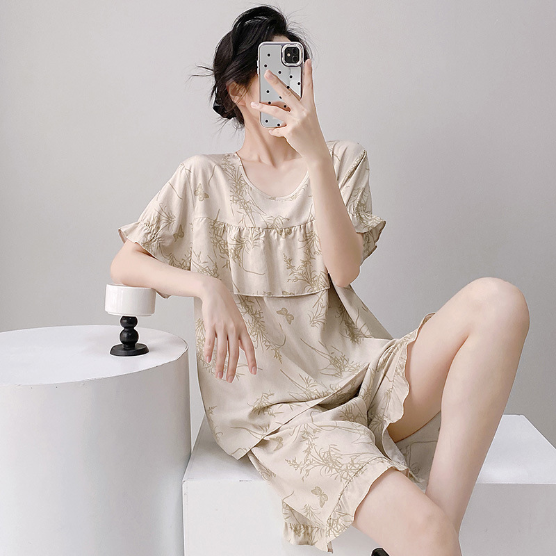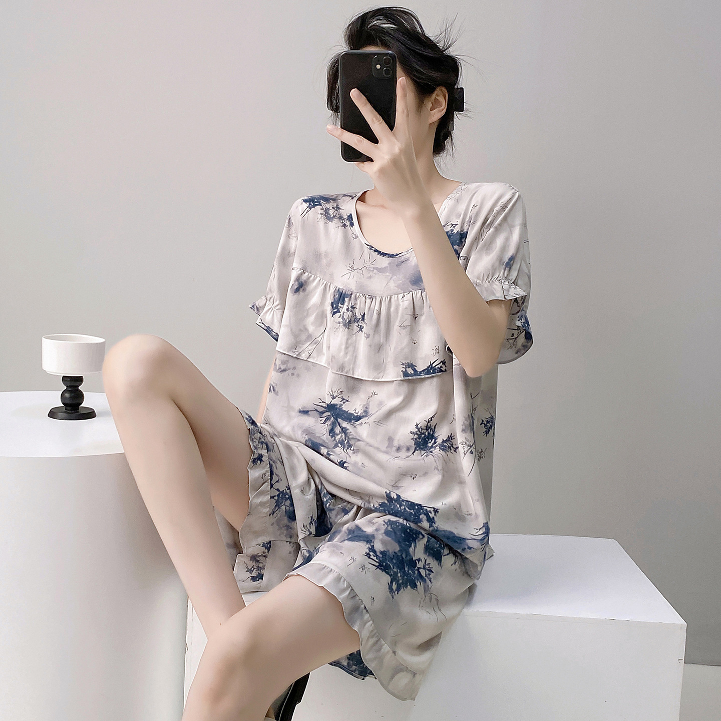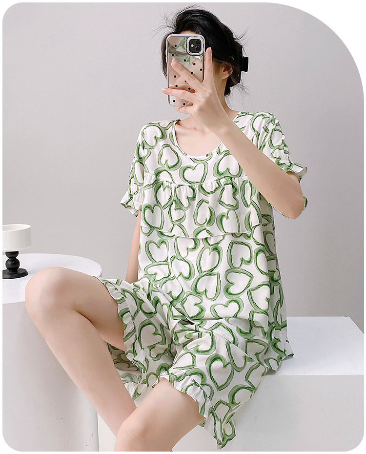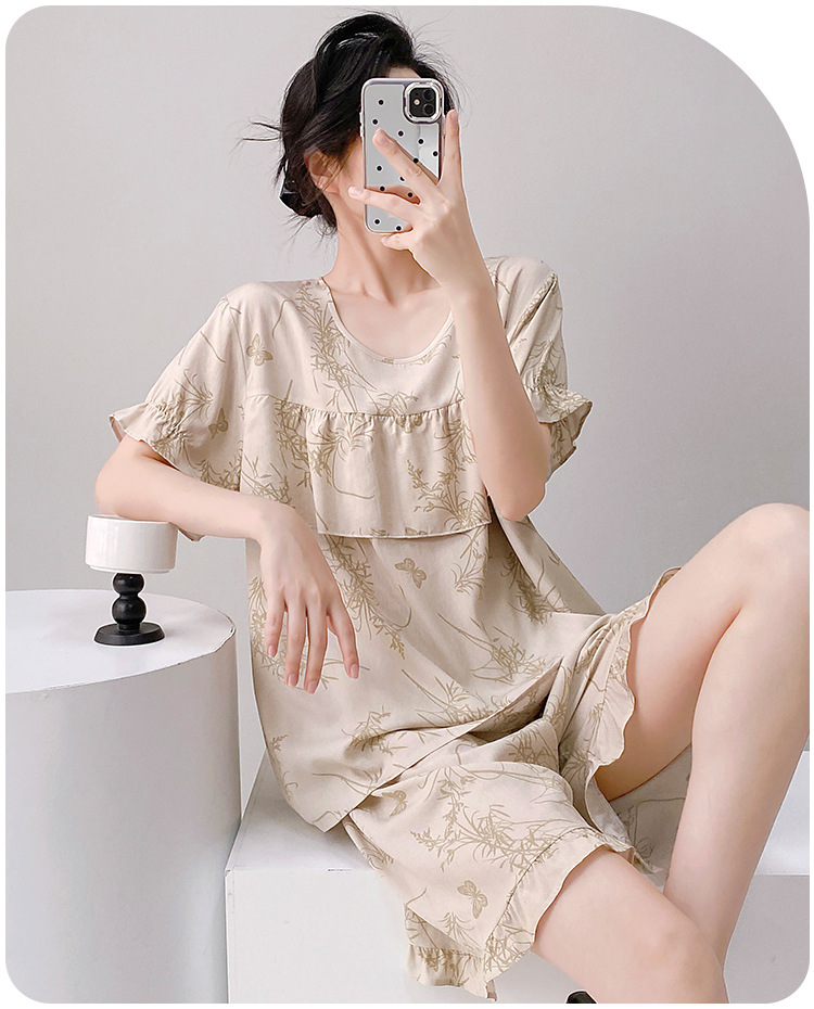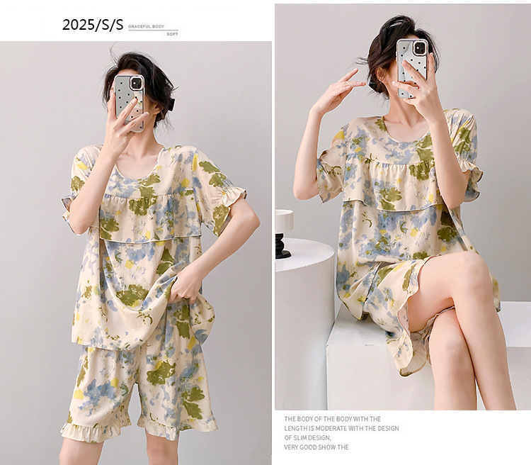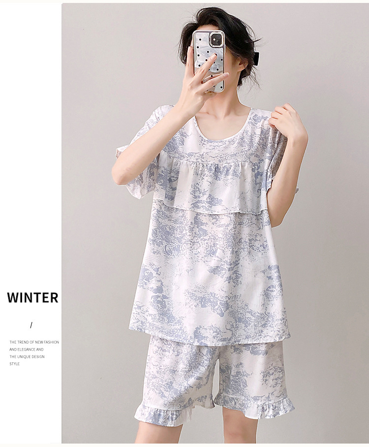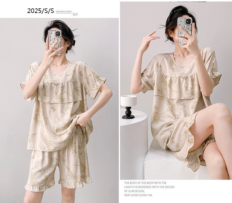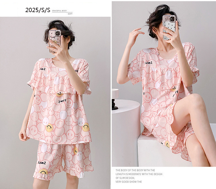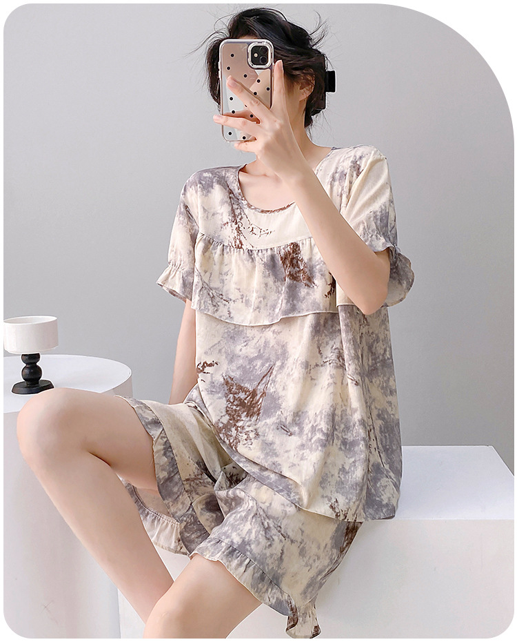 여름 면 실크 파자마 여성의 얇은 반팔 반바지 안티 범프 세트 고급 인공 면 플러스 사이즈 외부 착용 홈 의류스토어 가기