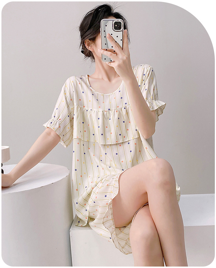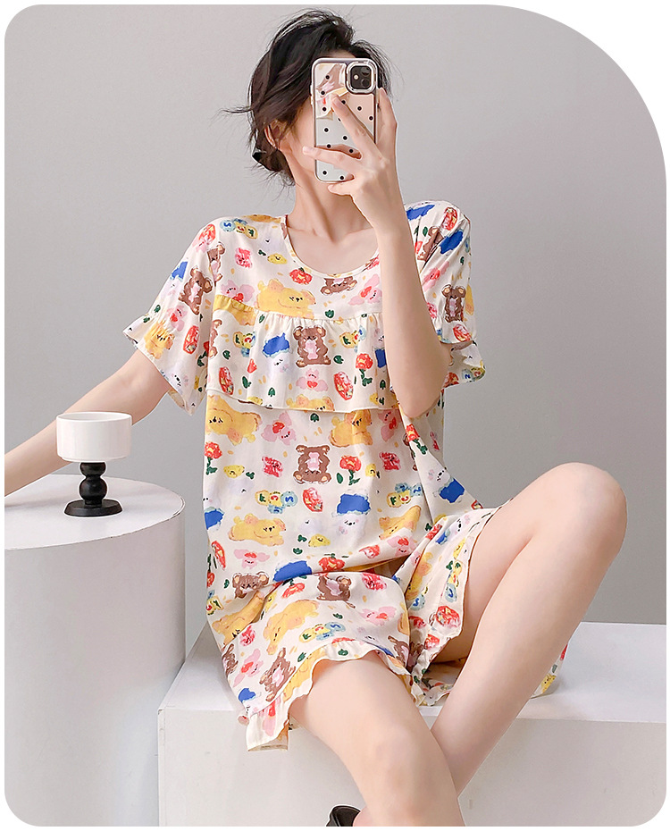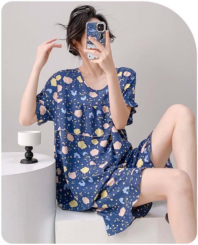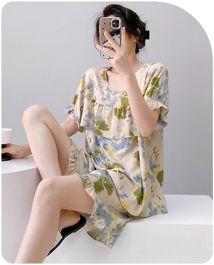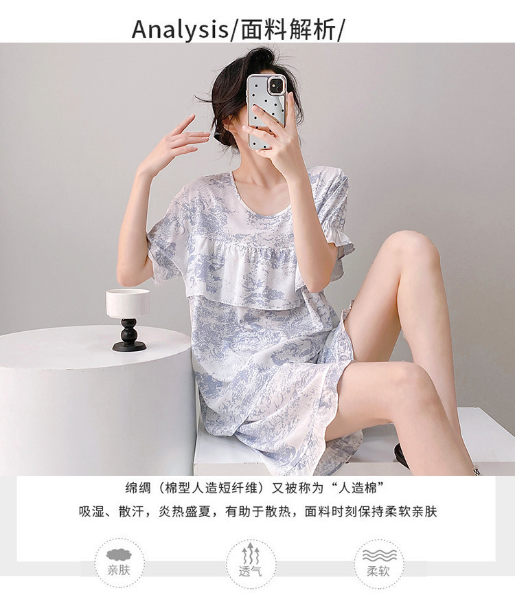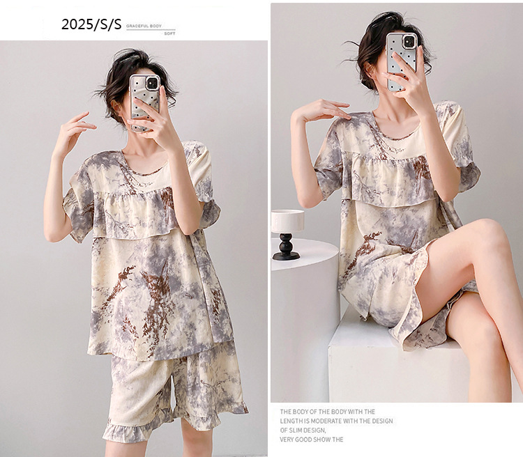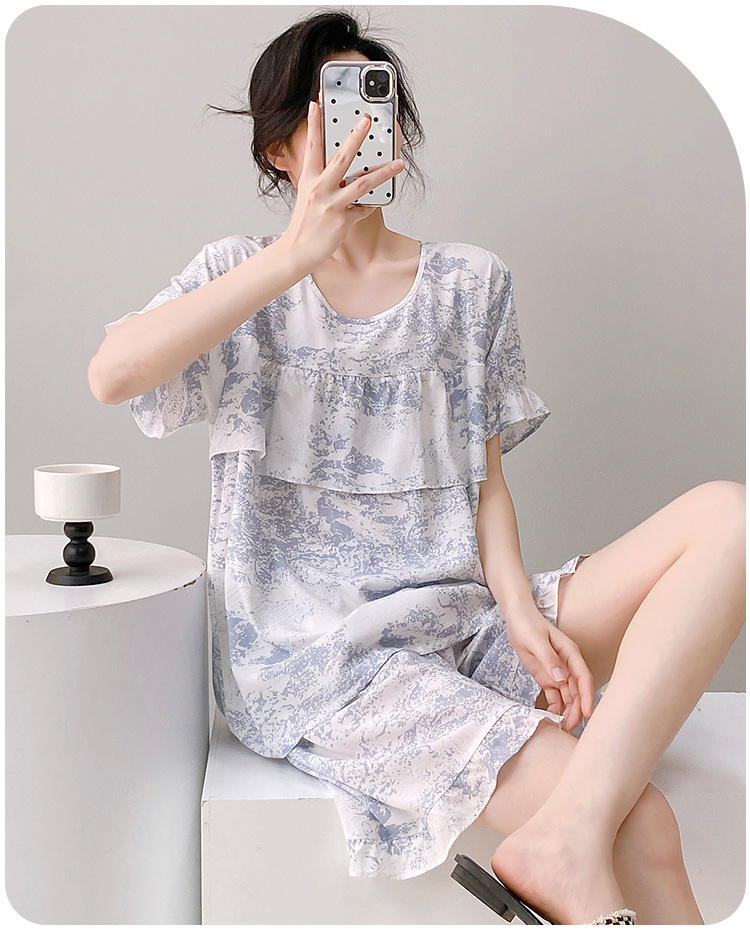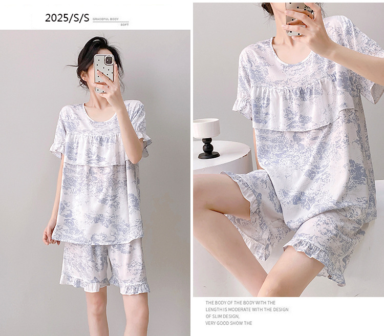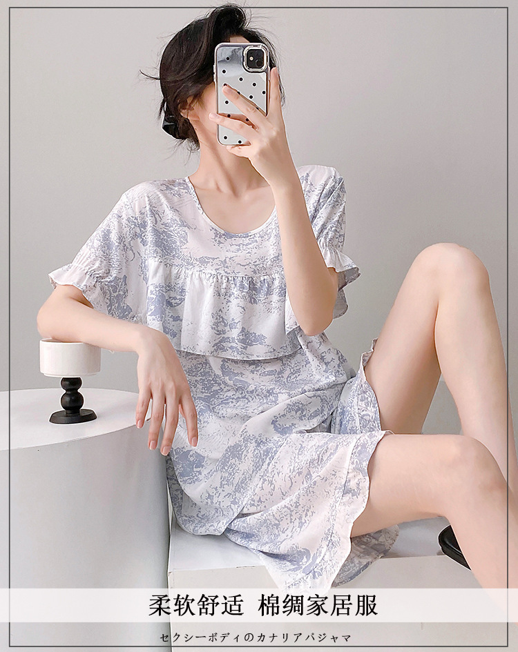 여름 면 실크 파자마 여성의 얇은 반팔 반바지 안티 범프 세트 고급 인공 면 플러스 사이즈 외부 착용 홈 의류스토어 가기