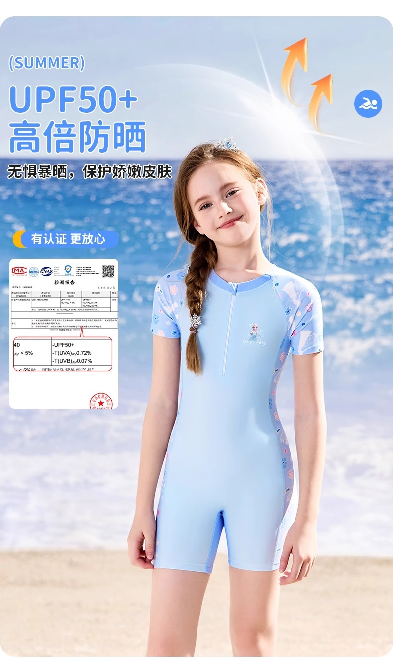 디즈니 어린이 수영복 소녀 겨울왕국 2025 새로운 원피스 자외선 차단 수영복 큰 어린이 수영복