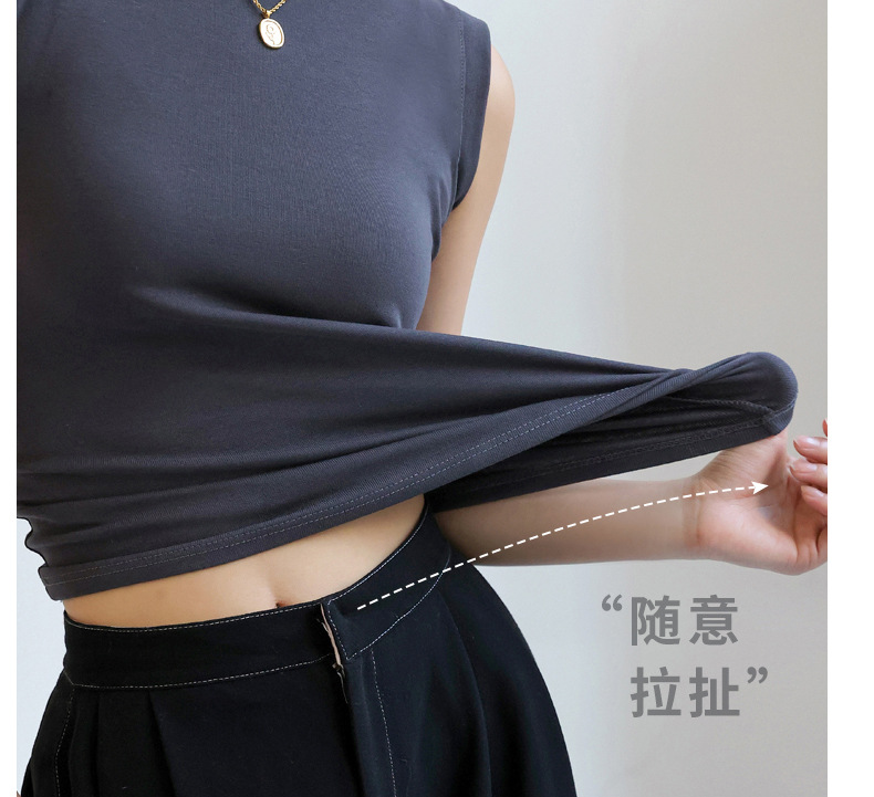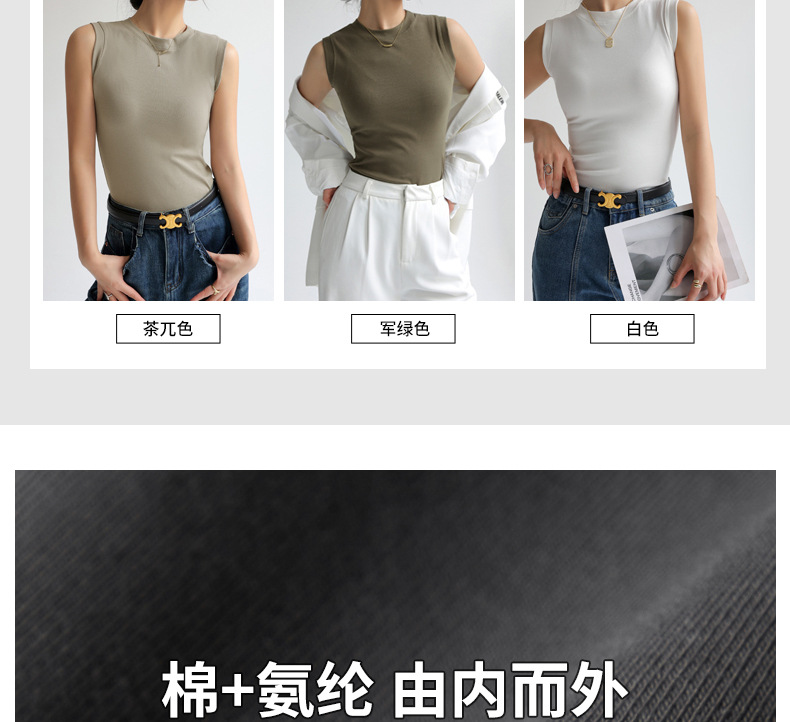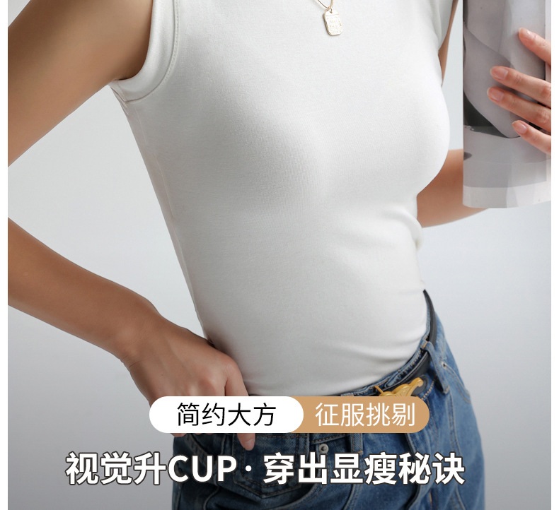 엄선된 라운드넥 솔리드 컬러 여성용 다용도 캐주얼 캐미솔 여름 신작 이너 레이어드 민소매 가슴 커버 탑스토어 가기