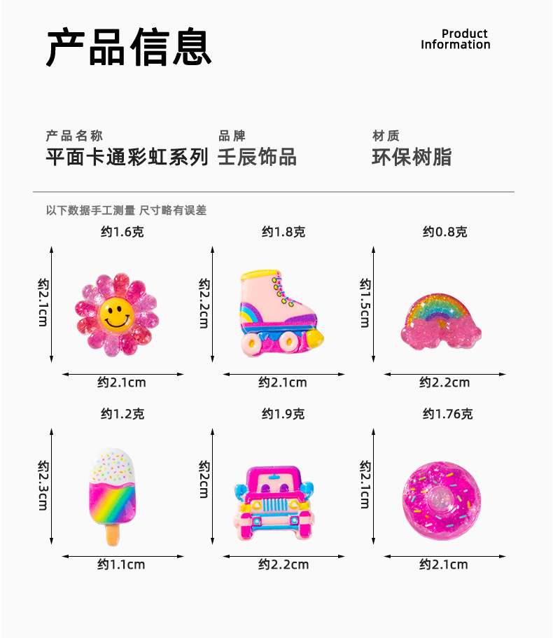 평면 만화 무지개 수지 액세서리 Diy 크림 접착제 수제 물 컵 스티커 냉장고 스티커 휴대 전화 쉘 보석 액세서리
