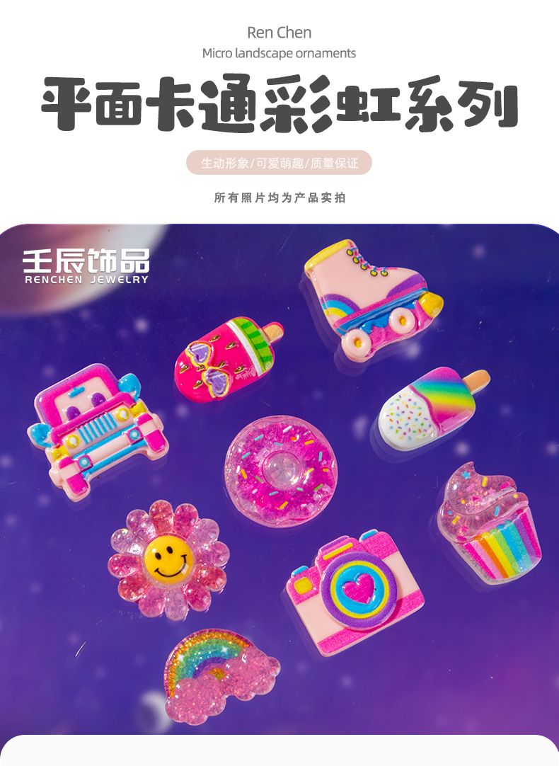 평면 만화 무지개 수지 액세서리 Diy 크림 접착제 수제 물 컵 스티커 냉장고 스티커 휴대 전화 쉘 보석 액세서리스토어 가기