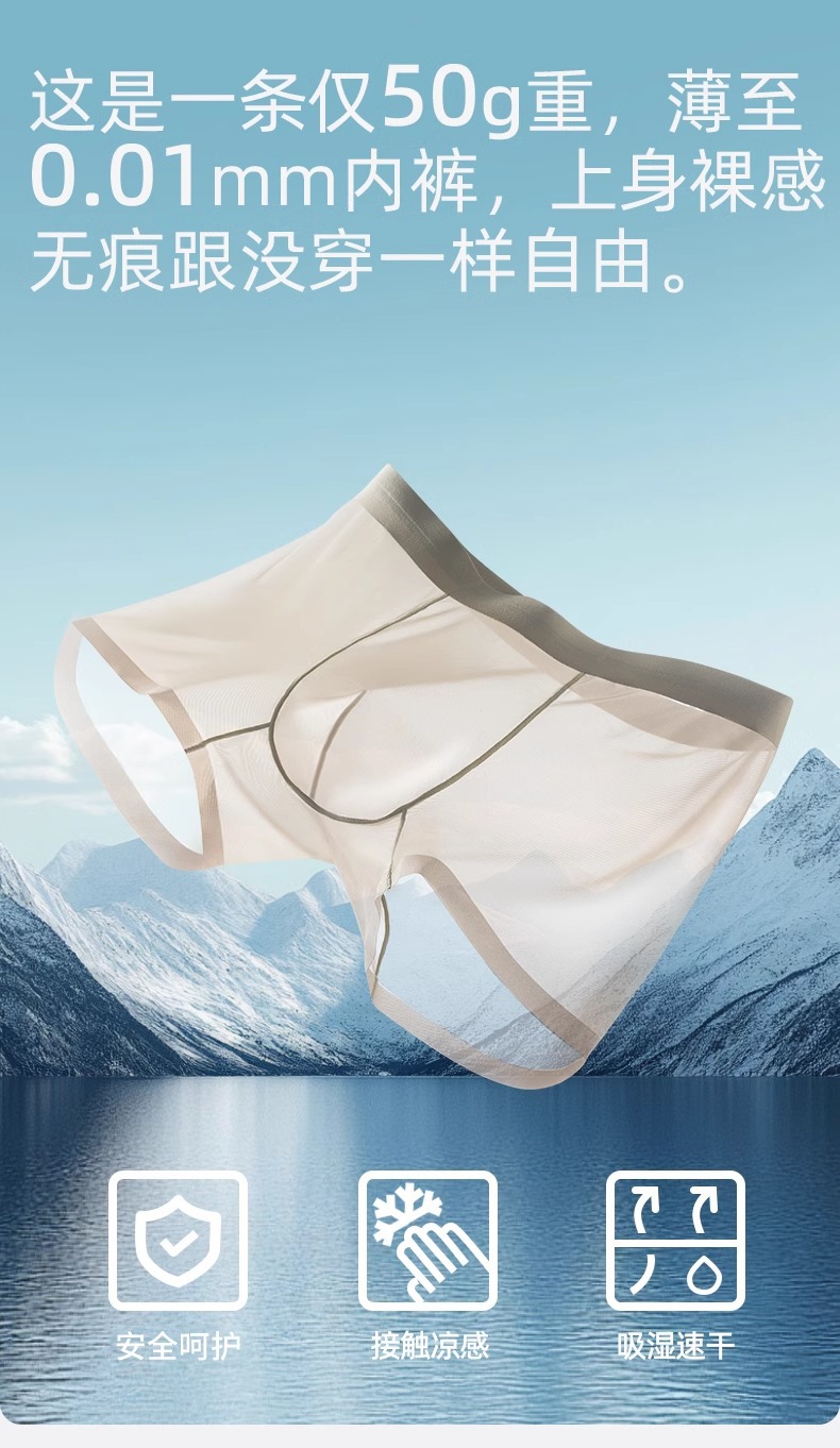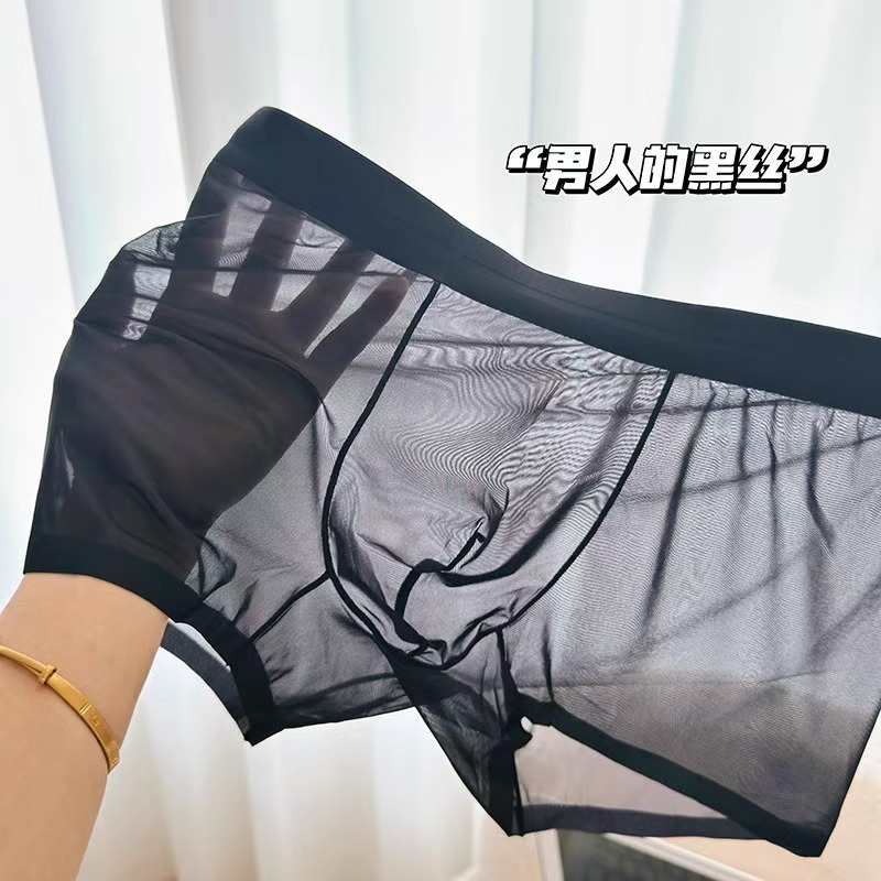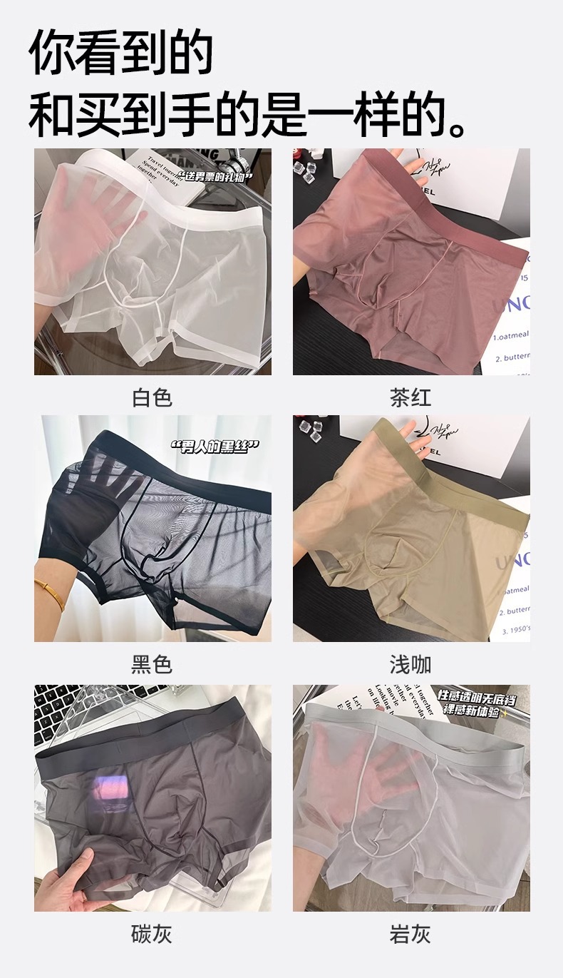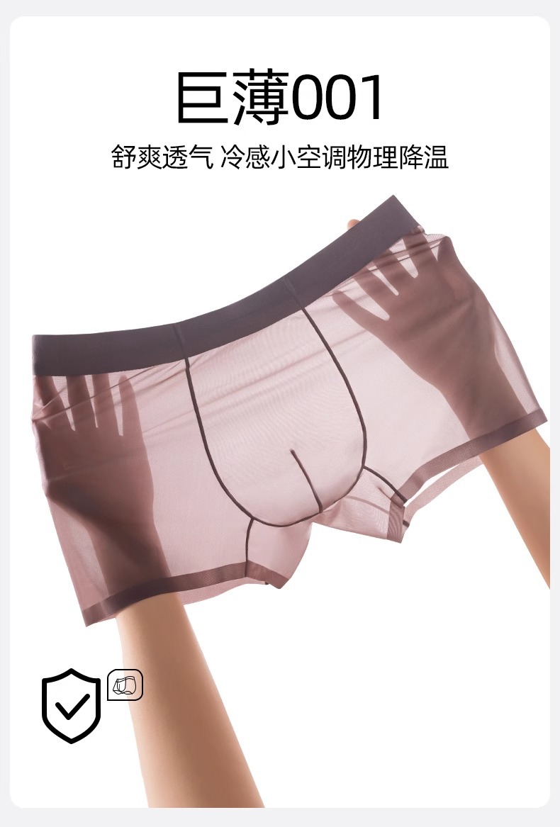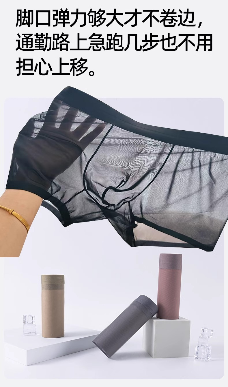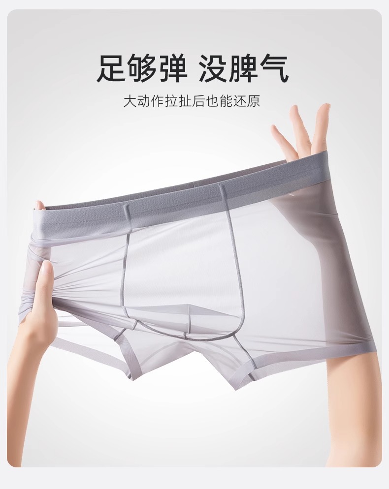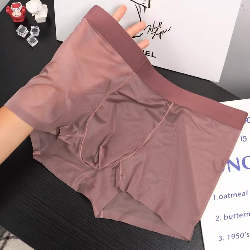 남자 속옷 아이스 실크 Tracless 남자 여름 4 코너 반바지 여름 남자 통기성 초박형 투명 반바지 및 바지