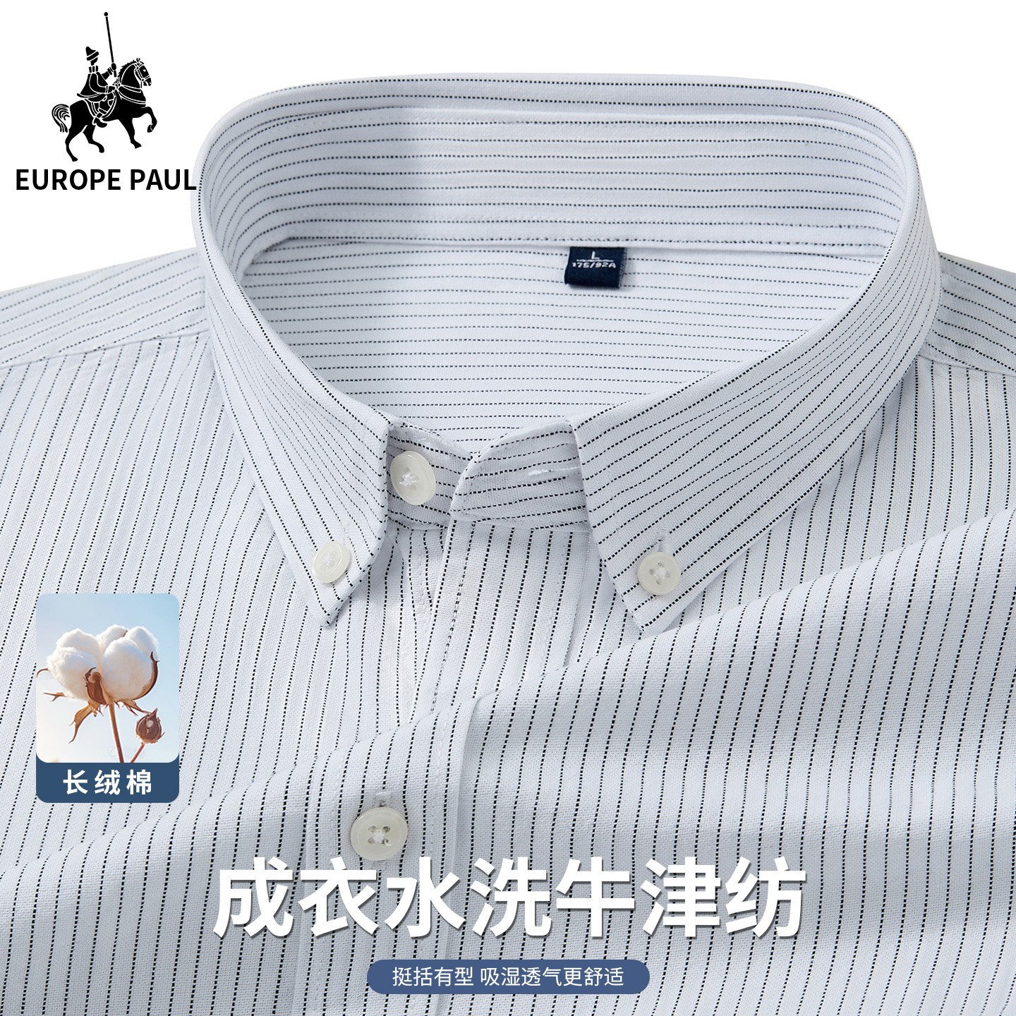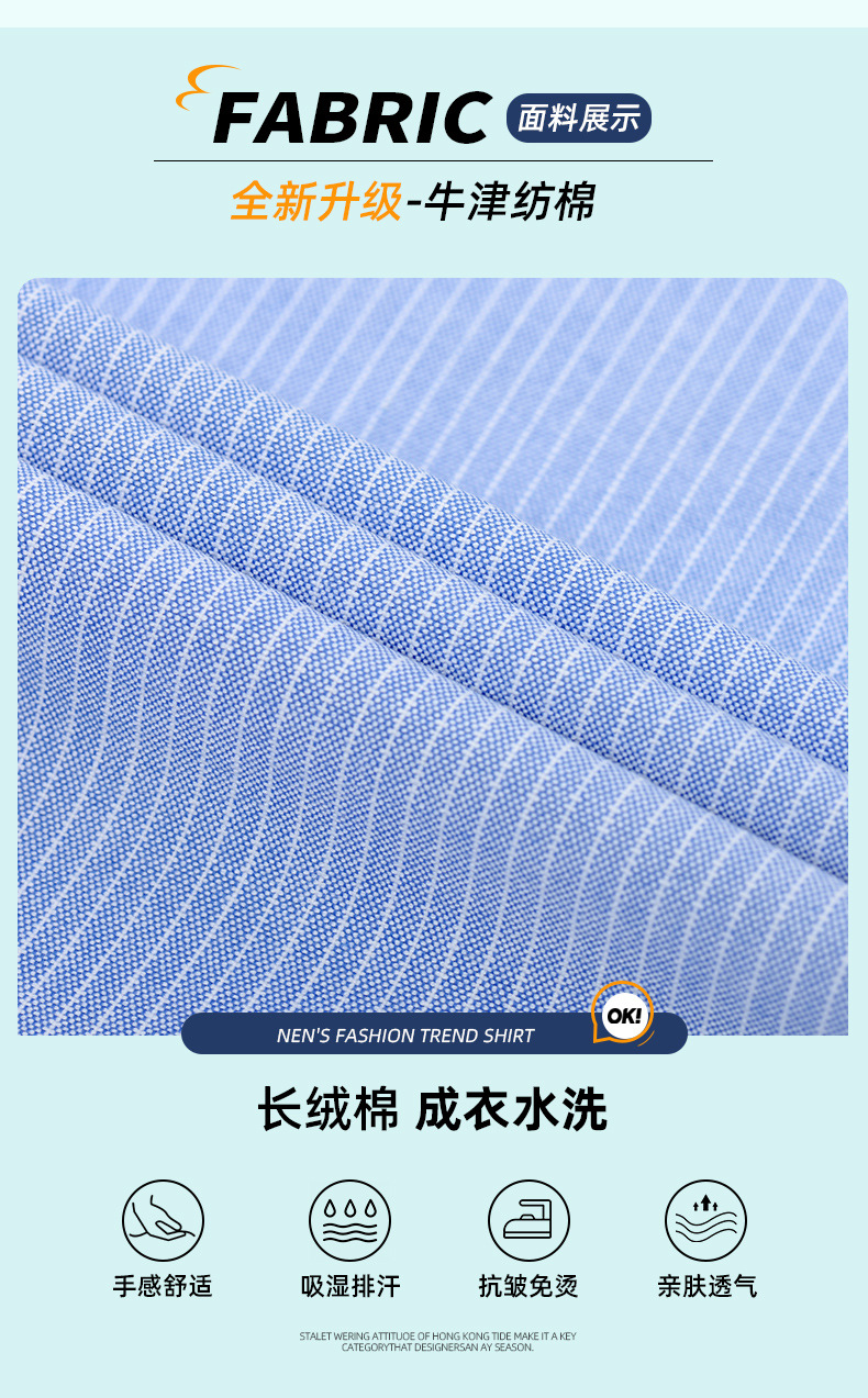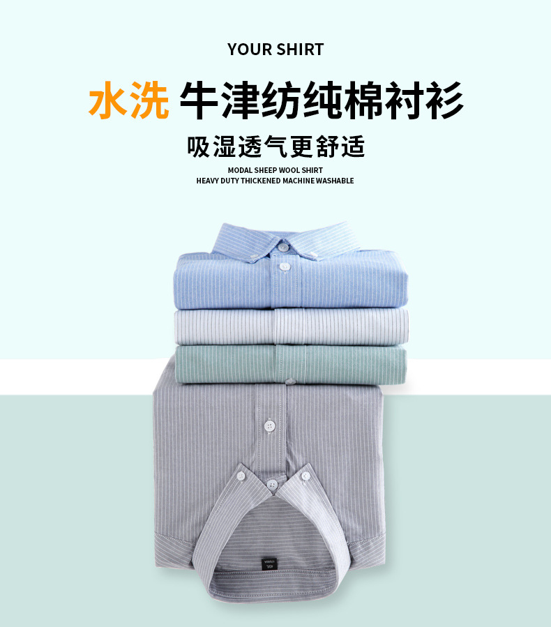봄 가을 신상 순면 옥스포드 직조 세로 스트라이프 긴팔 셔츠 남성 비즈니스 캐주얼 기본 셔츠스토어 가기
