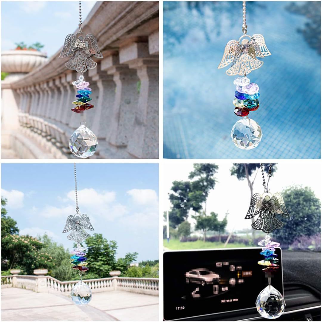 SunCatcher 크리스탈 수호 천사 자동차 백미러 펜던트 SunCatcher 안뜰 공예 풍경스토어 가기