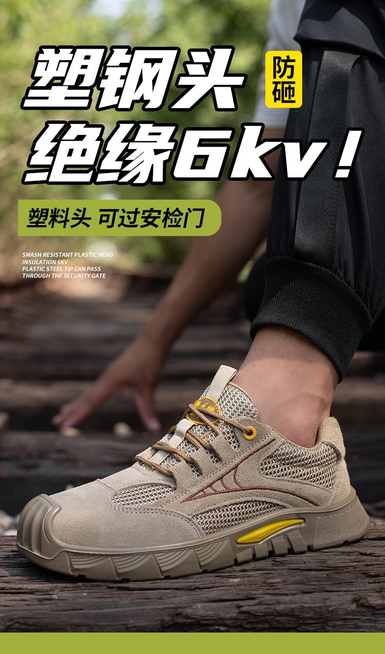 남성용 노동 보호 신발, 통기성, 탈취제, 경량 플라스틱 발가락 캡, 스매싱 방지, 펑크 방지, 절연 6KV 내마모성 건설 현장 용접공 신발