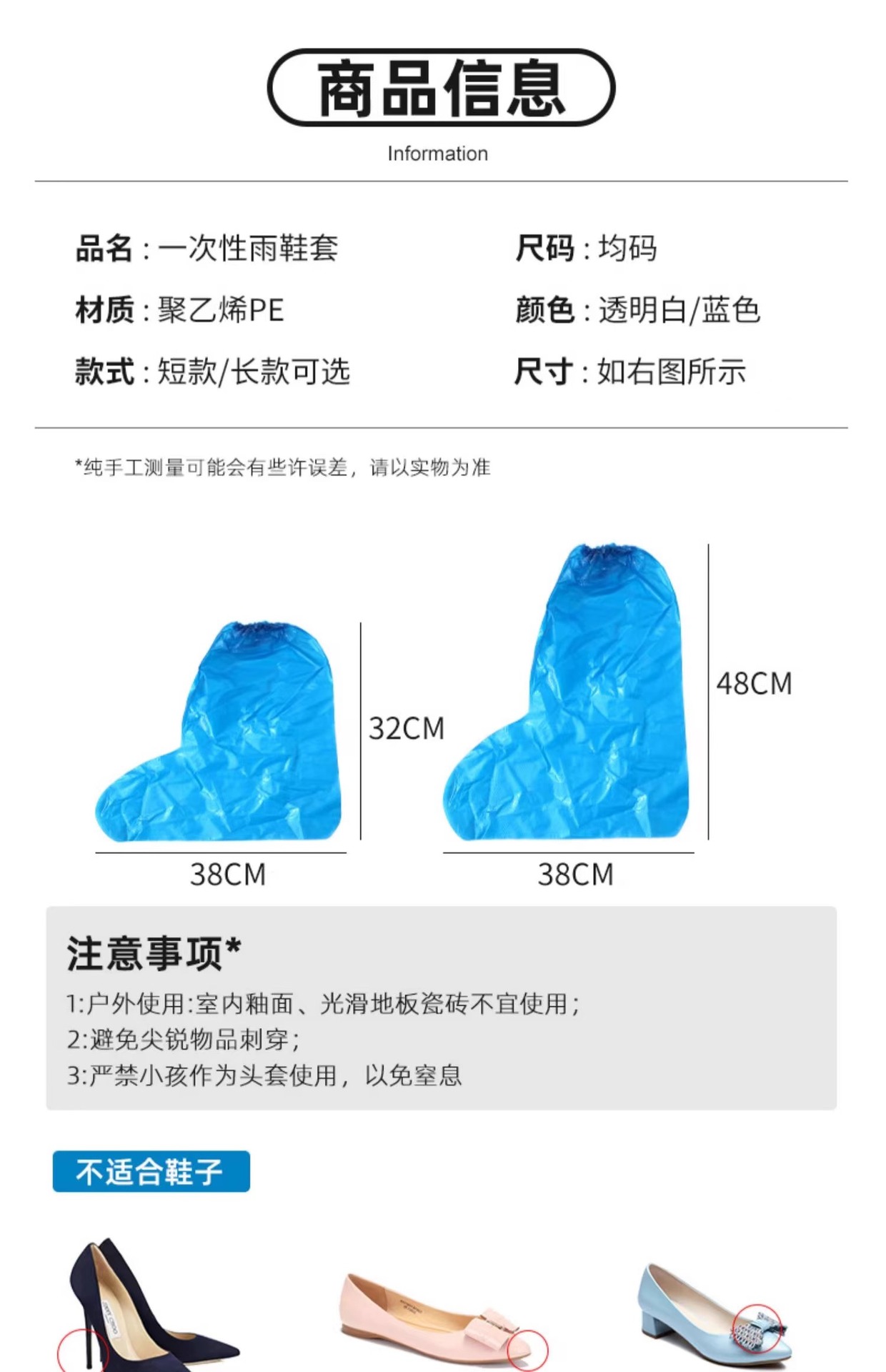 일회용 레인슈즈 커버, 미끄럼 방지, 남성용 및 여성용 방수, 두껍고 내마모성, 비오는 날씨, 야외 양식 신발 커버, 고등학교 튜브 학습용 겉옷스토어 가기