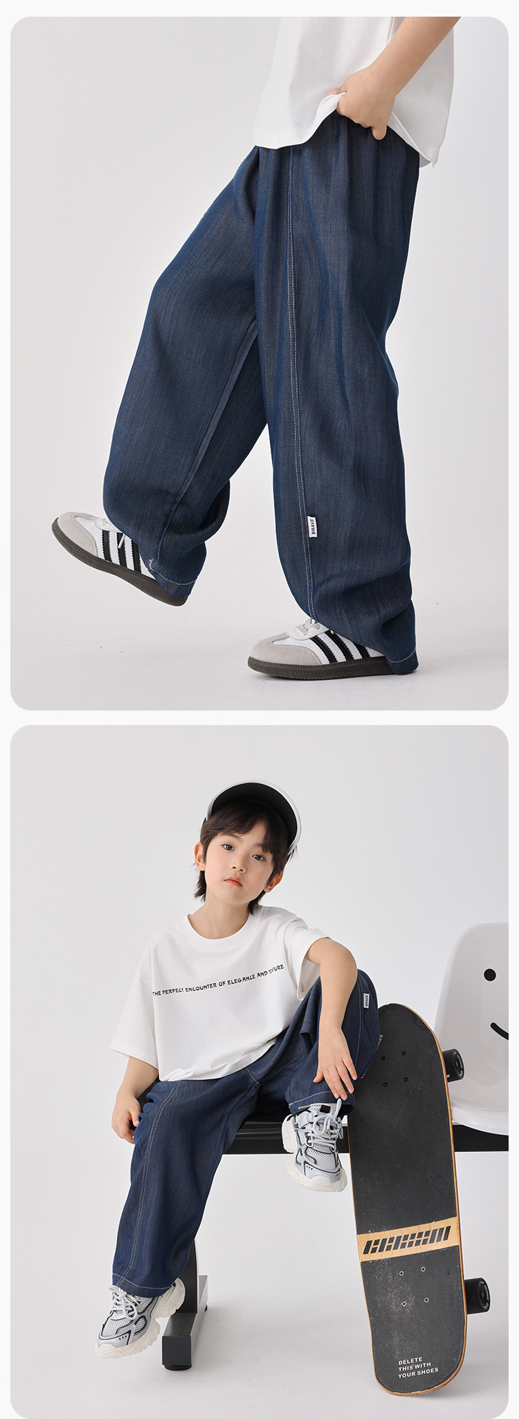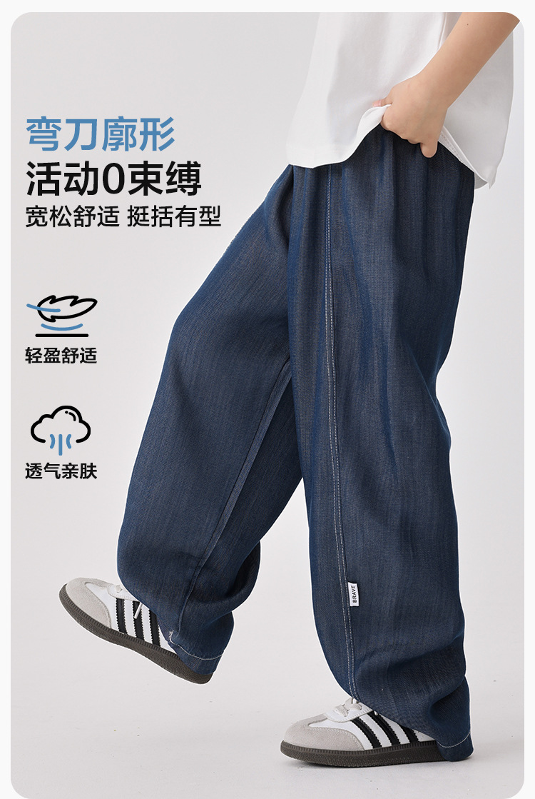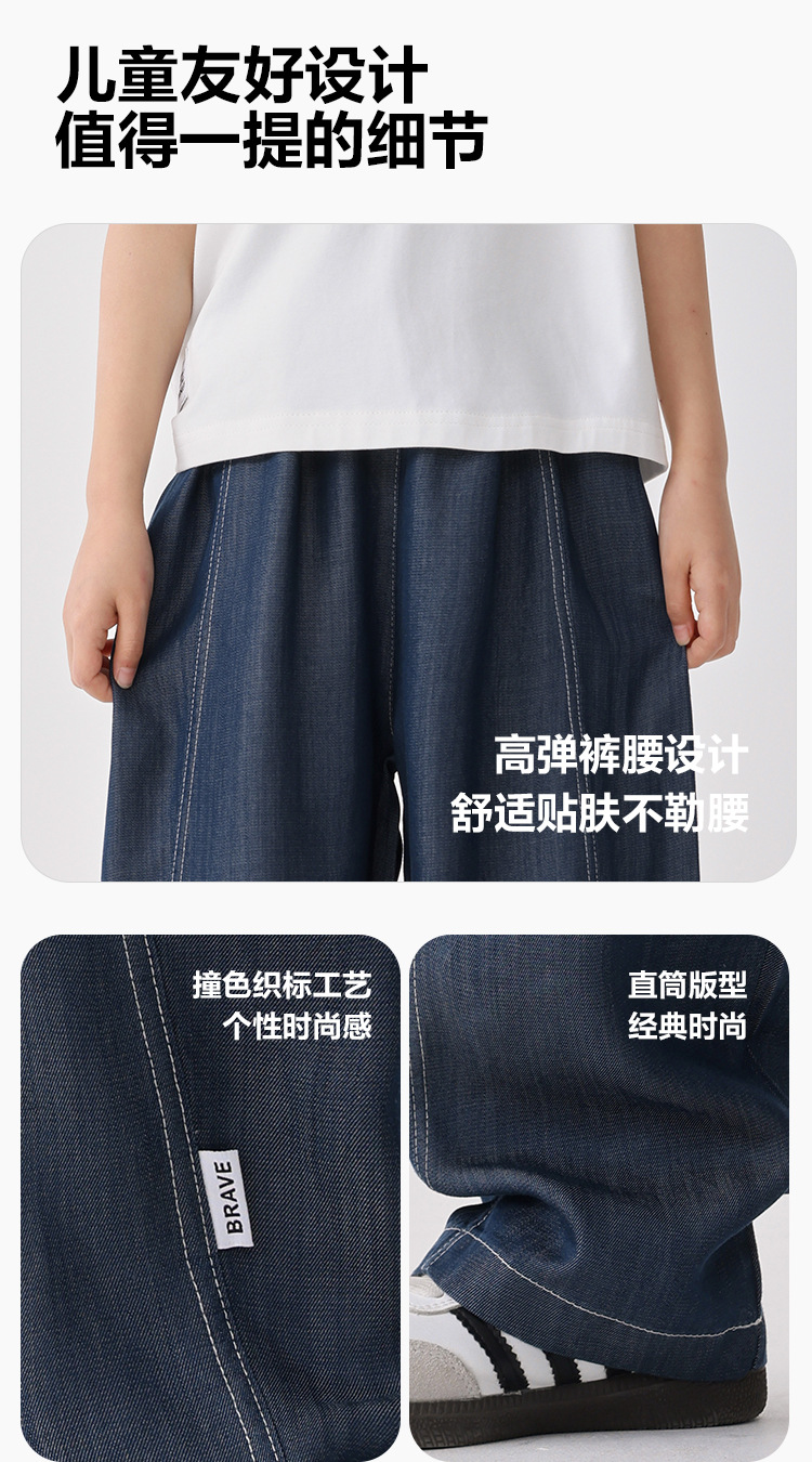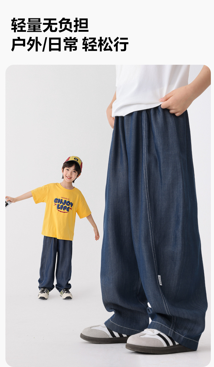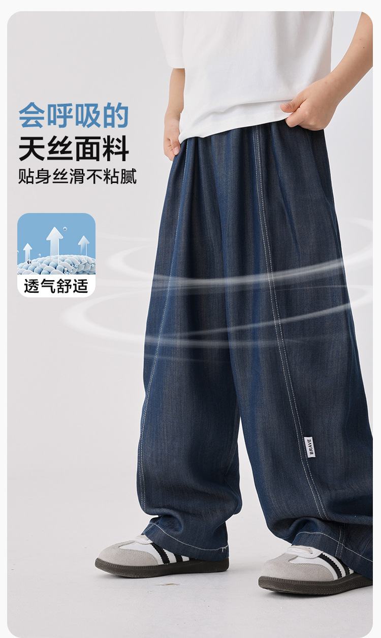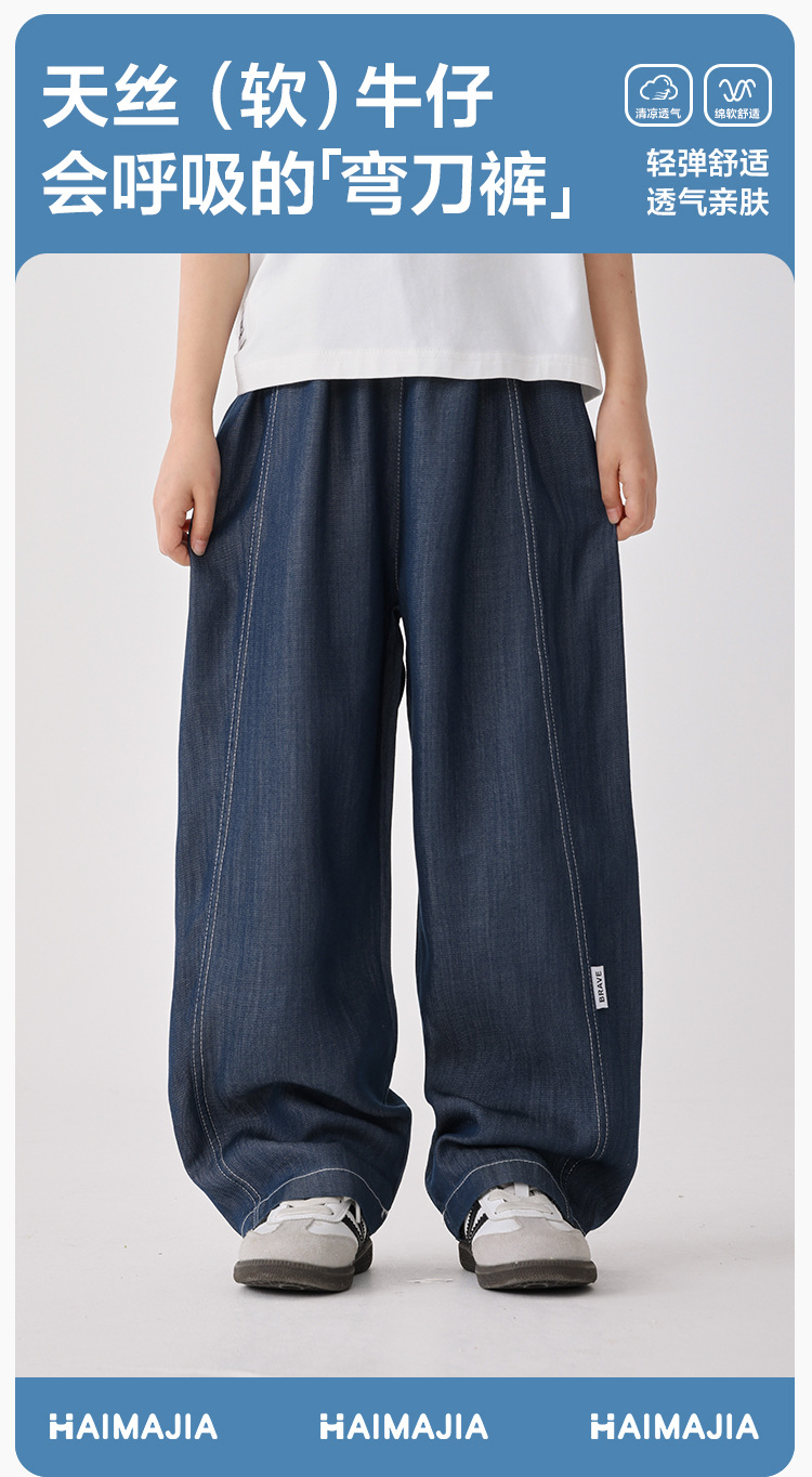 하이마아동복 2026 여름 신상품 남아용 레이온 모기방지 바지 여름용 얇은 웨이브 팬츠 소프트 데님 팬츠