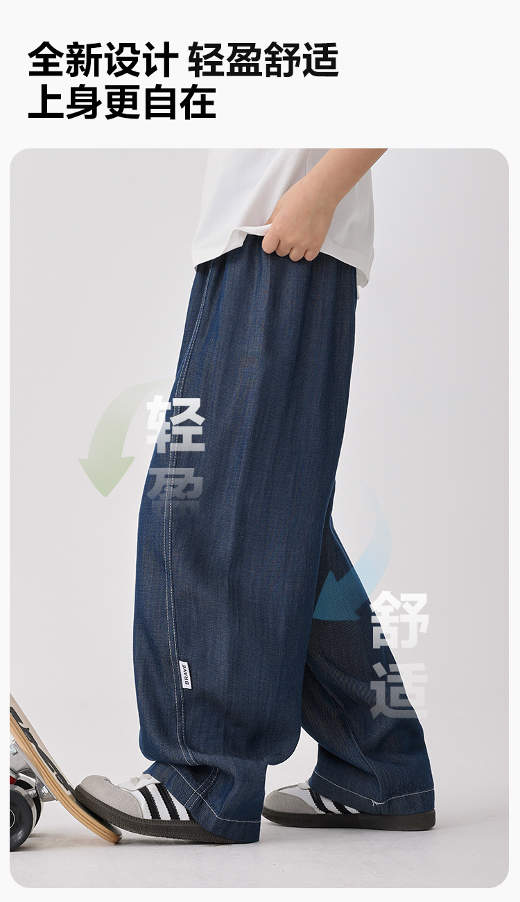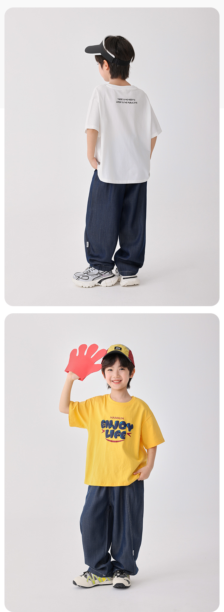 하이마아동복 2026 여름 신상품 남아용 레이온 모기방지 바지 여름용 얇은 웨이브 팬츠 소프트 데님 팬츠스토어 가기