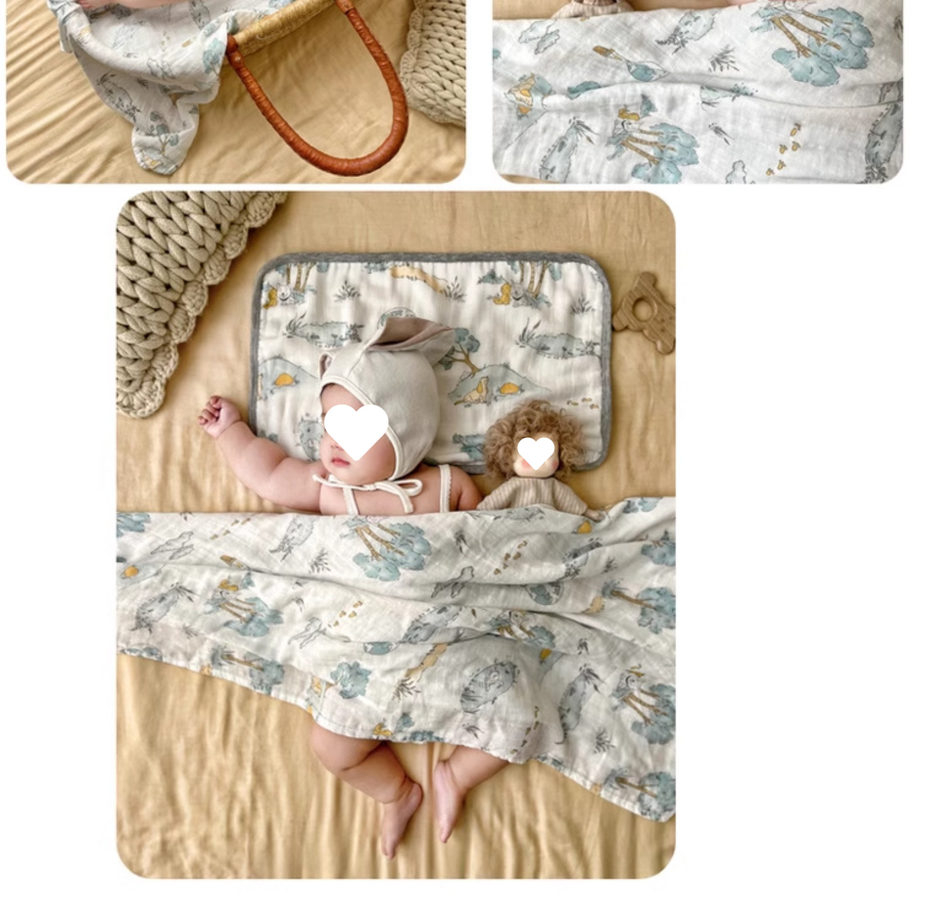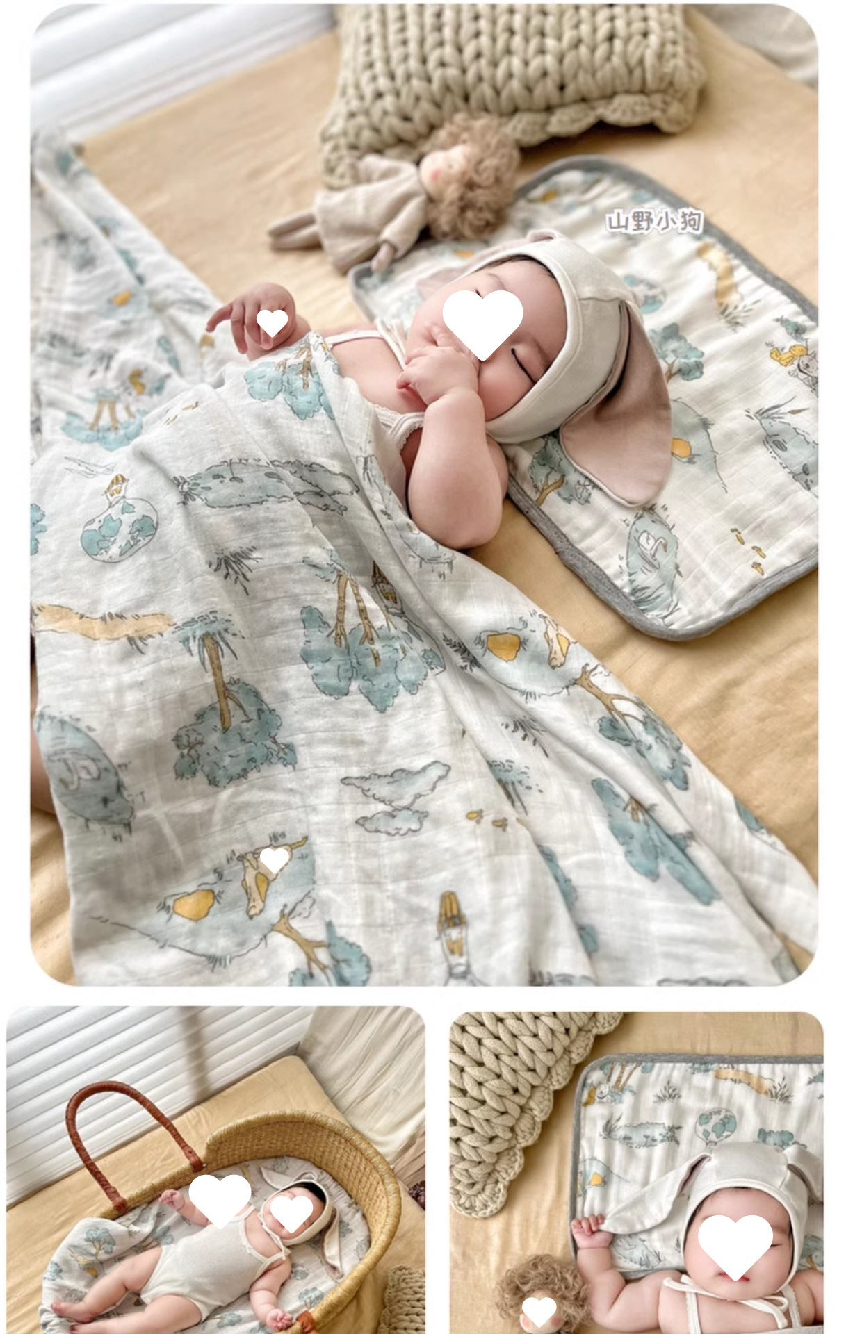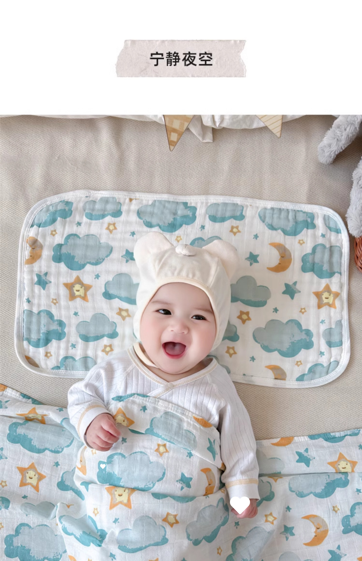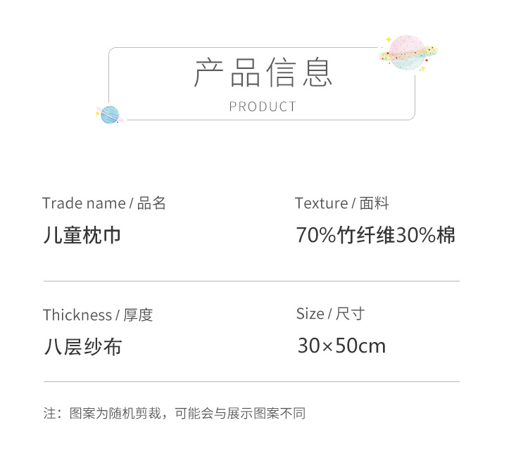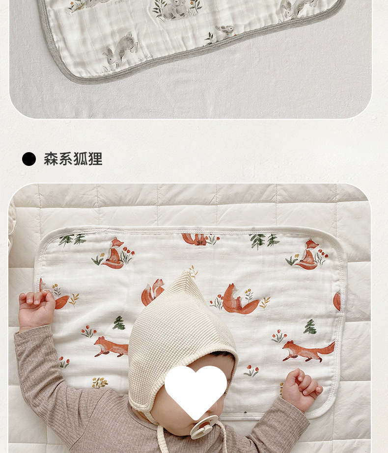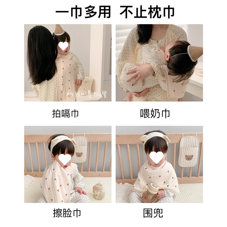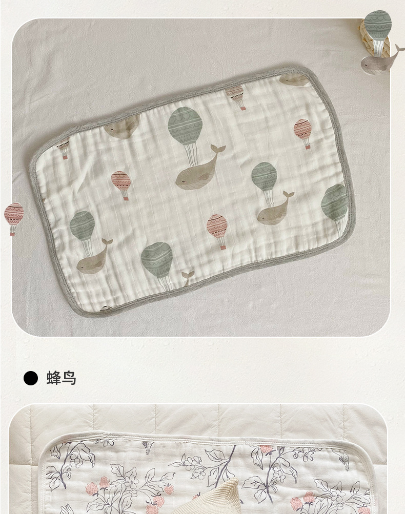 아기베개, 구름베개, 대나무면 거즈, 아기구토방지 및 트림타월, 사계절 땀흡수 및 통기성 베개커버