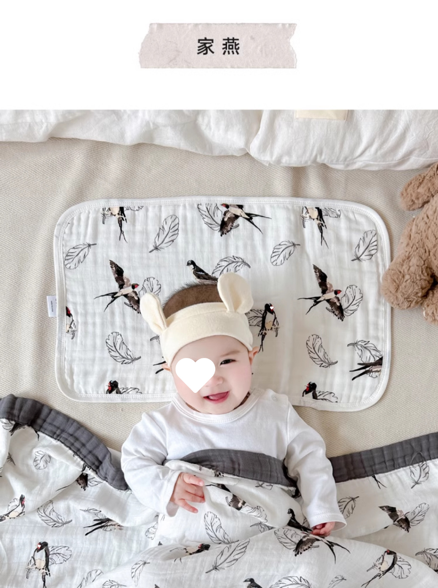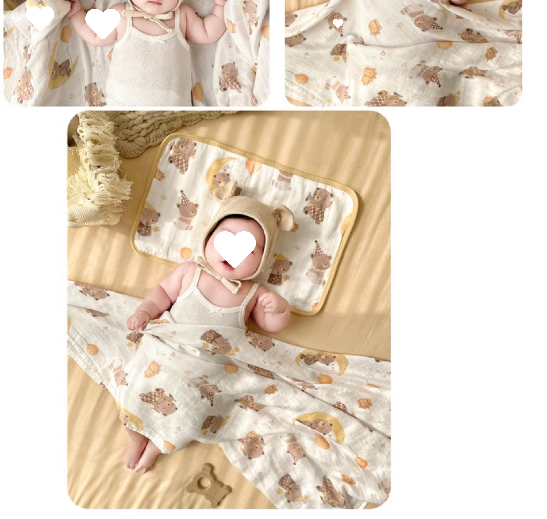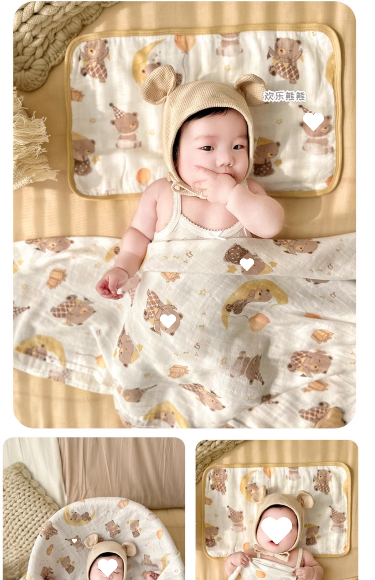 • Happy Bear—8겹 거즈 베개 커버