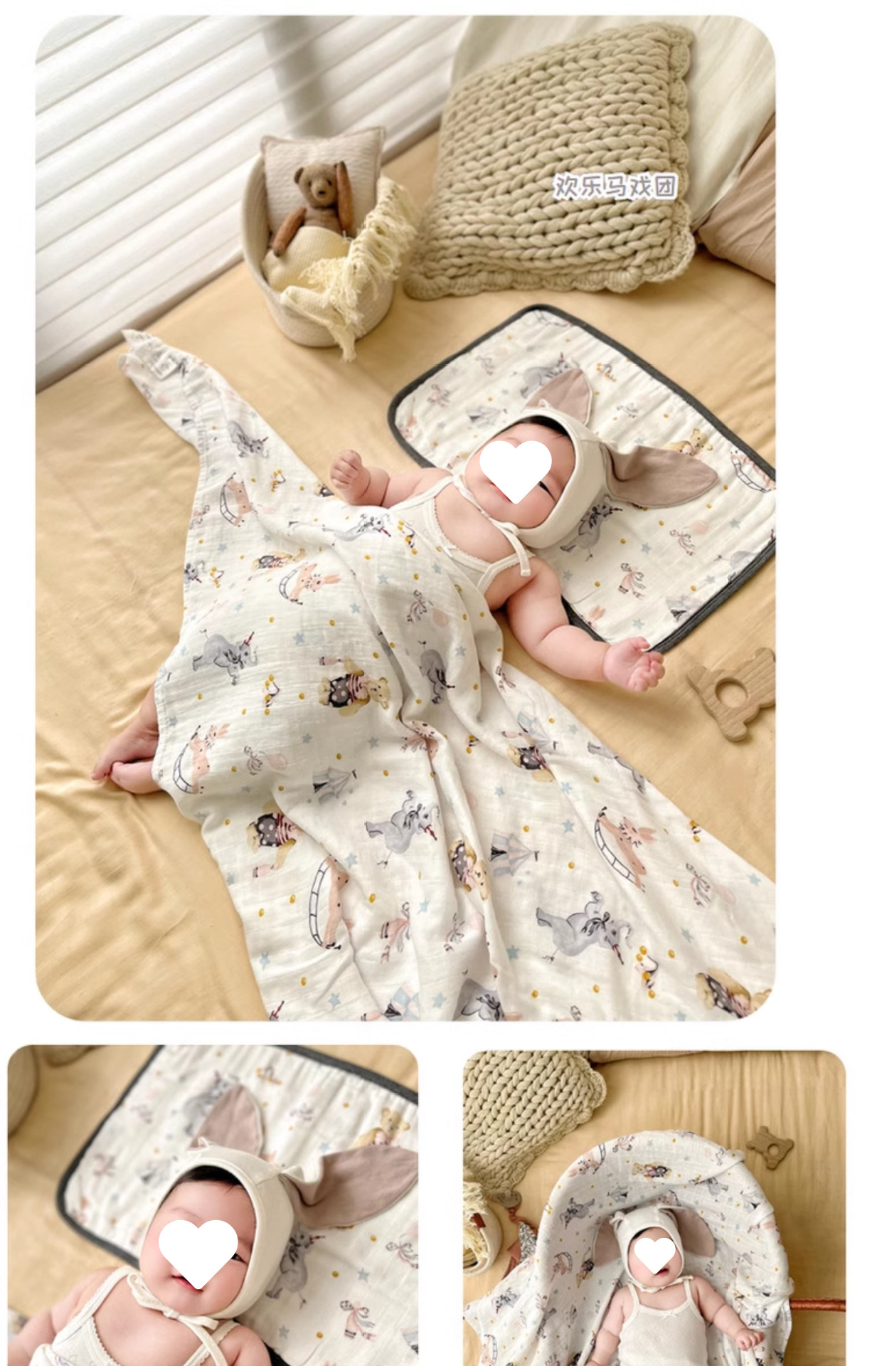 • 해피 서커스—8겹 거즈 베개 커버