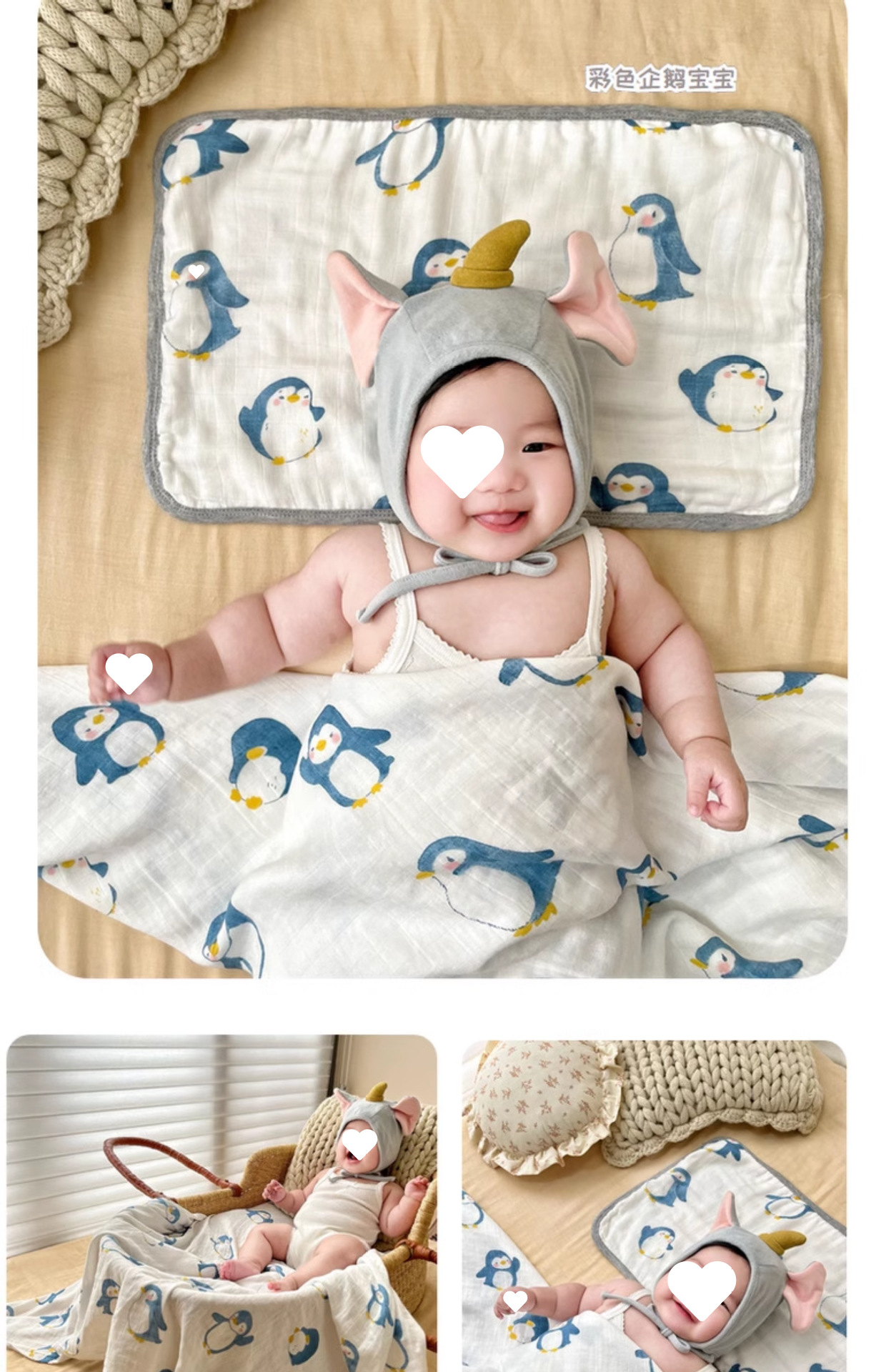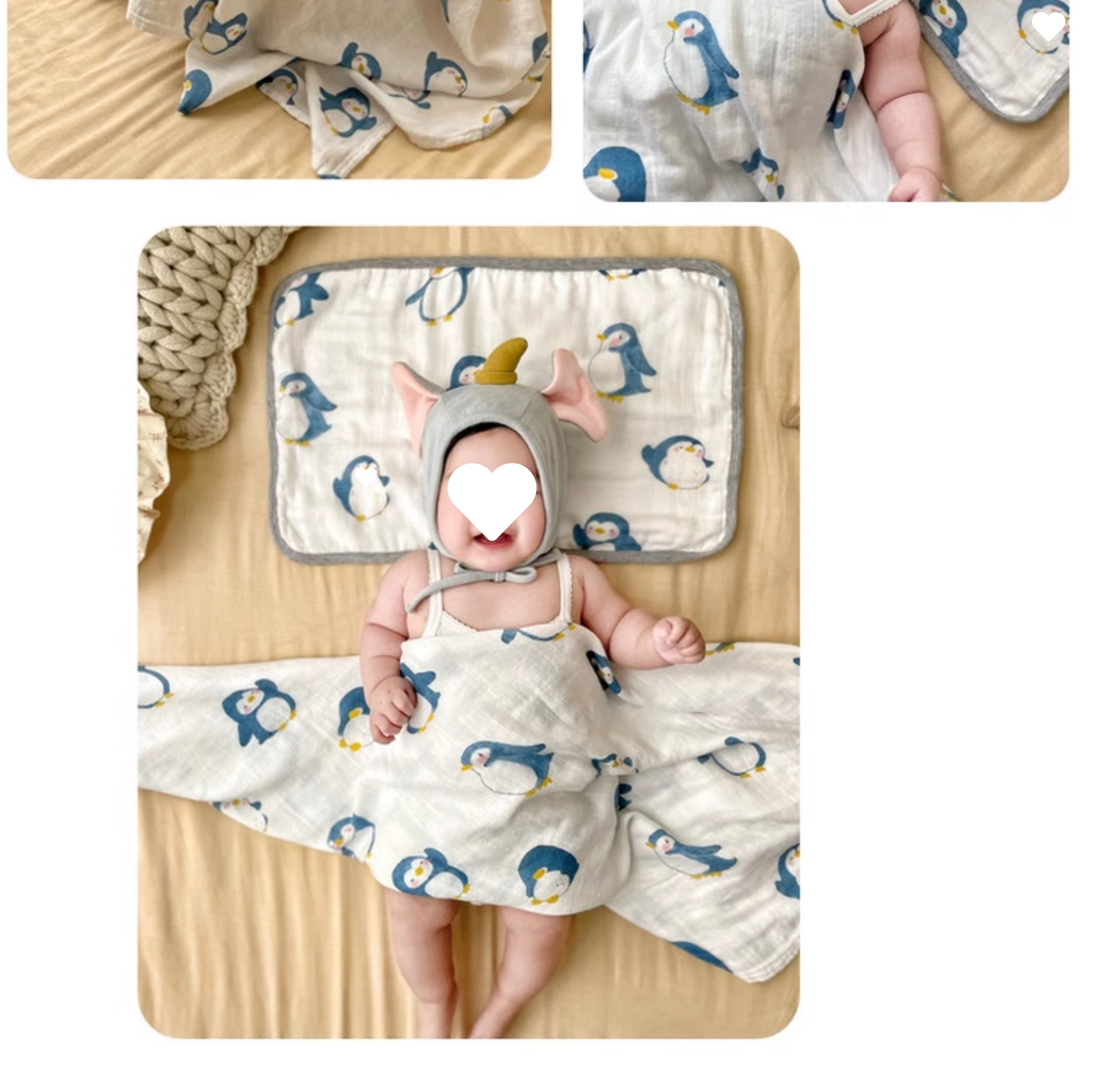 • 펭귄 - 8겹 거즈 베개 커버