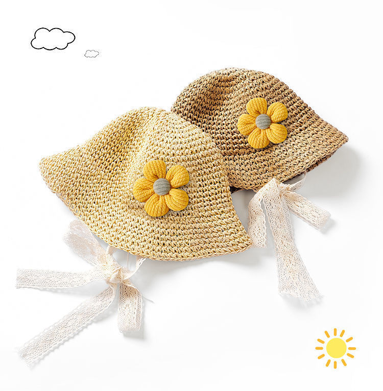 아기 밀짚 모자 여름 얇은 아기 소녀 햇빛 해변 공주 어린이 여름 귀여운 해바라기 모자스토어 가기