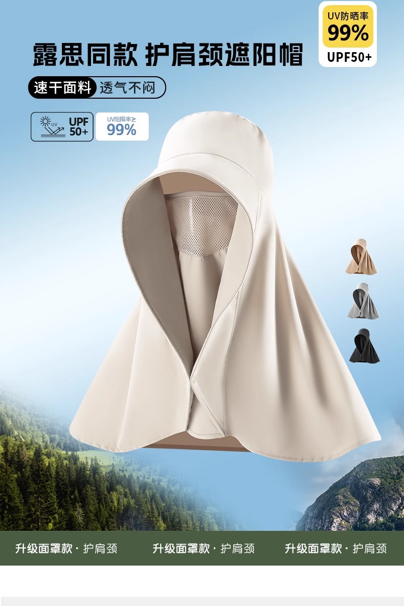 큰 테두리 마스크 목 보호 통합 목도리 여름 빠른 건조 태양 모자와 함께 전체 얼굴 자외선 차단제 차양 모자를 가진 Zhao Rusi스토어 가기