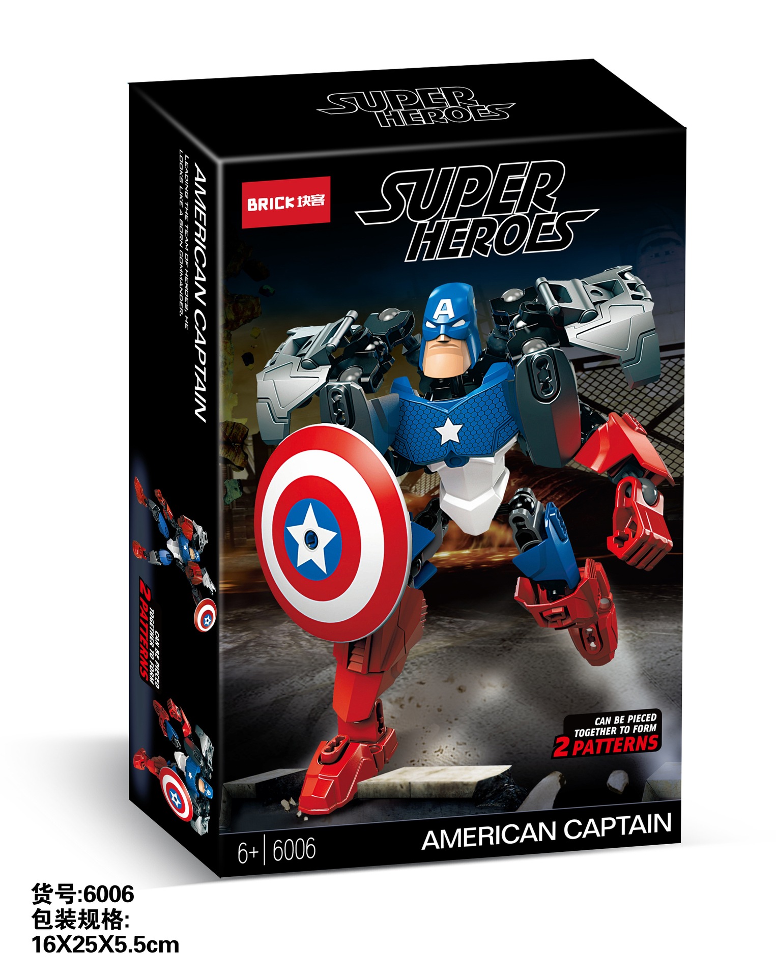 Blocker 6001-6006 캡틴 아메리카 슈퍼 히어로 정의 조립 빌딩 블록 어벤저스
