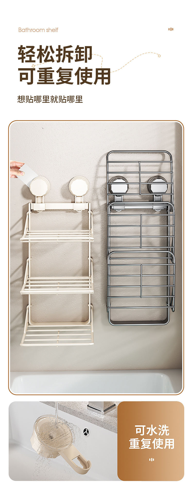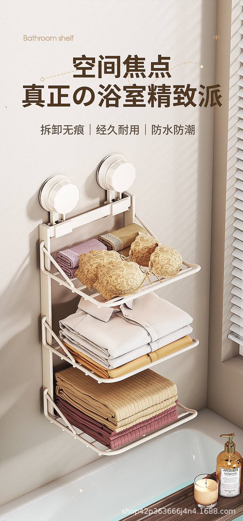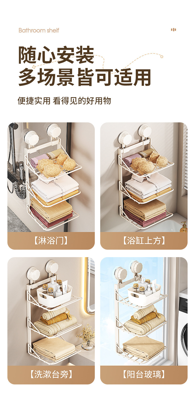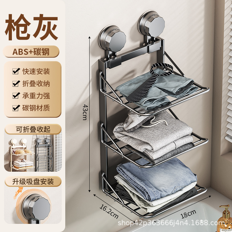 화장실 흡입 펀치없는 옷 보관 랙 무료 접는 비 점유 옷 수건 욕실 보관 랙스토어 가기