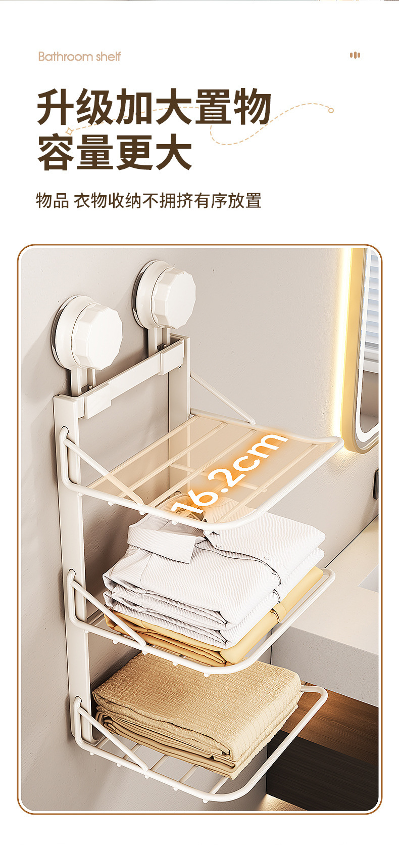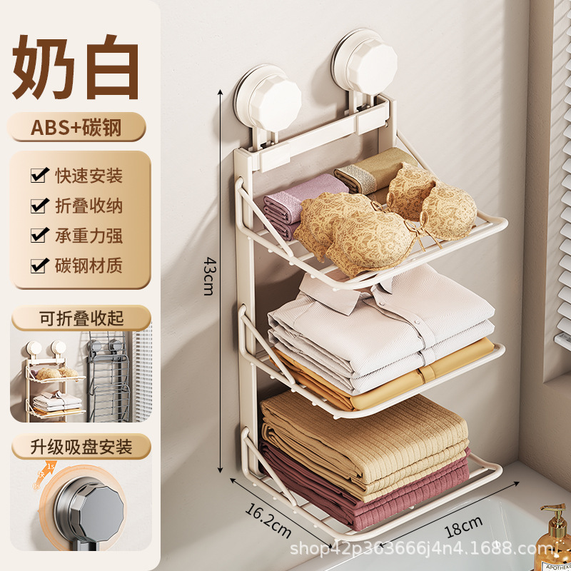 화장실 흡입 펀치없는 옷 보관 랙 무료 접는 비 점유 옷 수건 욕실 보관 랙