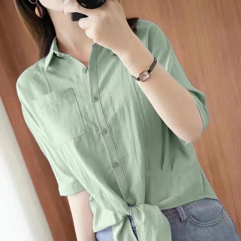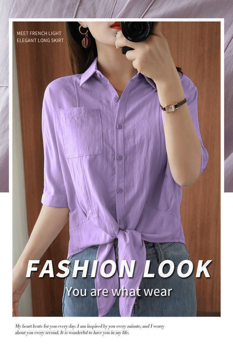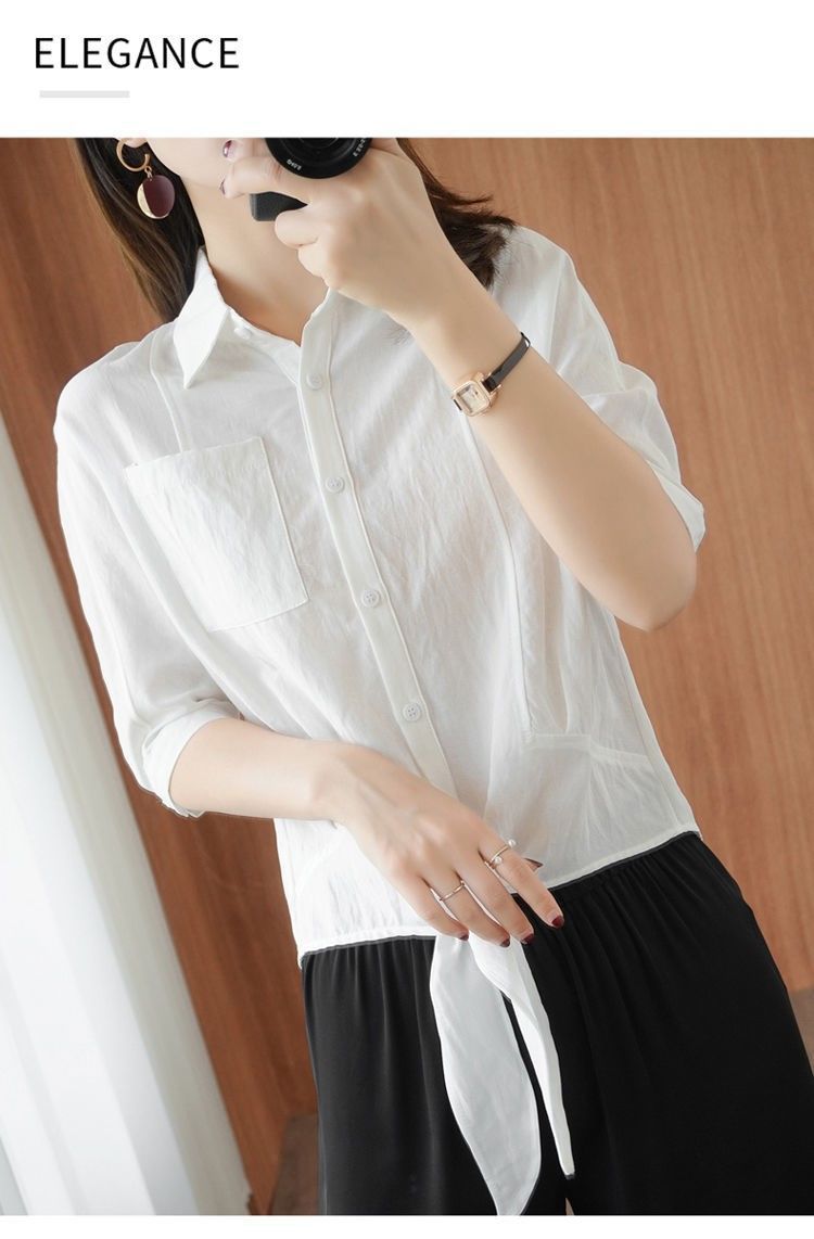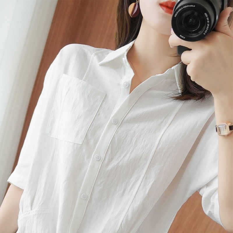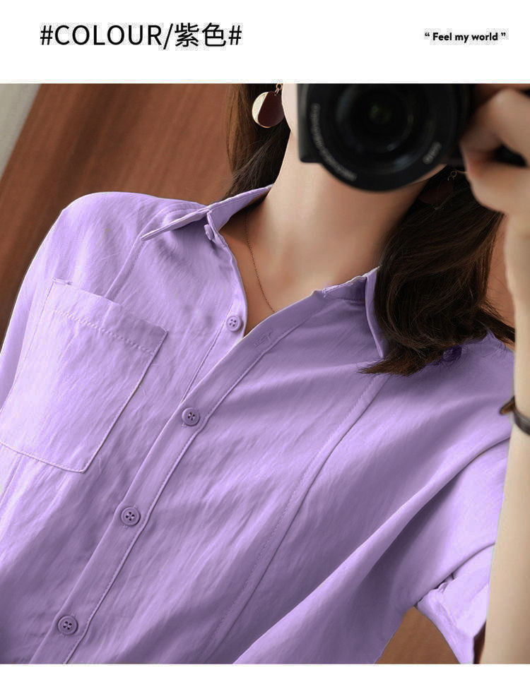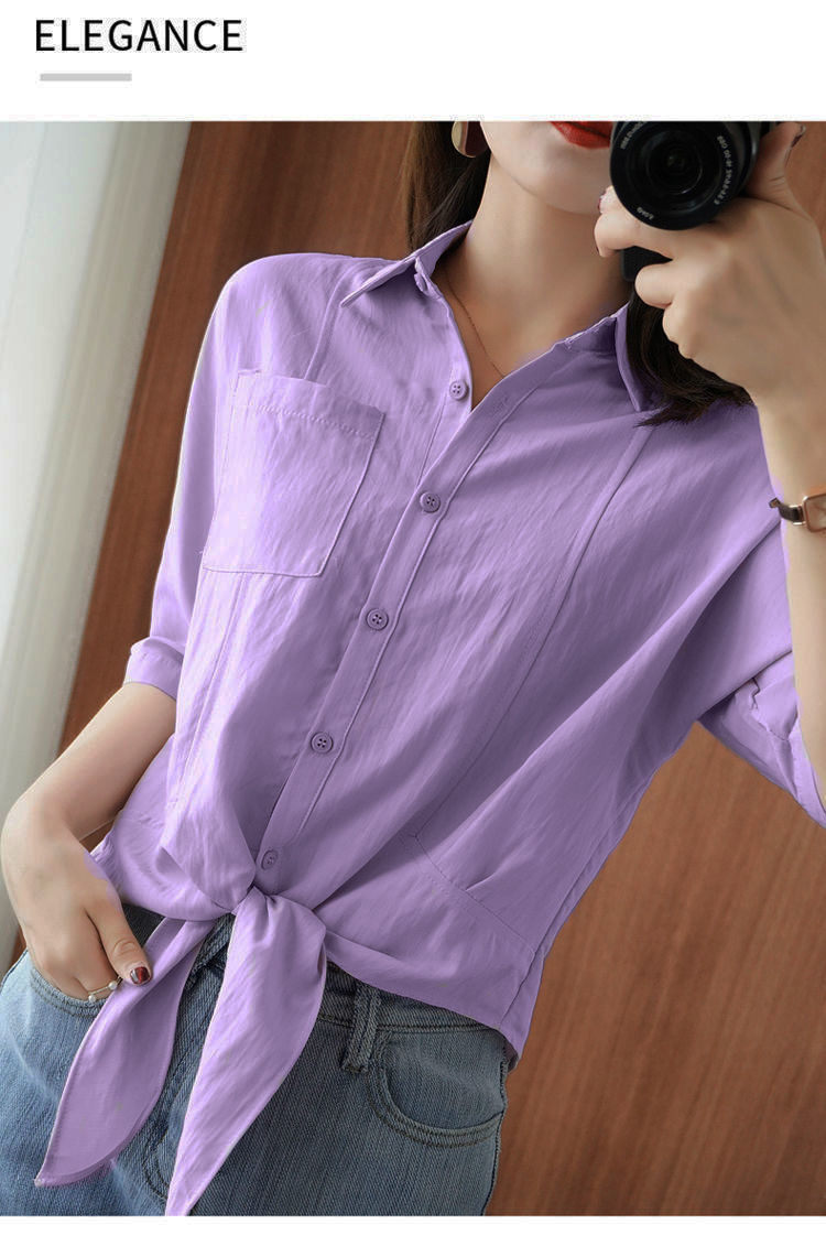 여성용 쉬폰 셔츠, 여름 루즈 스트랩 자외선 차단 에어컨 셔츠, 아이스 실크 탑, 5부소매 셔츠, 디자인 니치스토어 가기