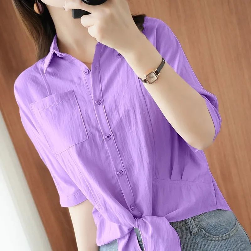 여성용 쉬폰 셔츠, 여름 루즈 스트랩 자외선 차단 에어컨 셔츠, 아이스 실크 탑, 5부소매 셔츠, 디자인 니치