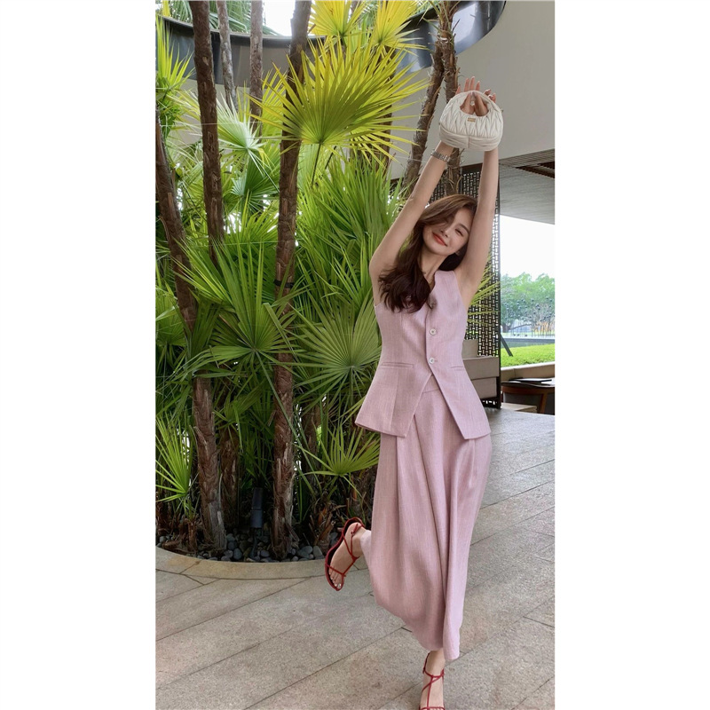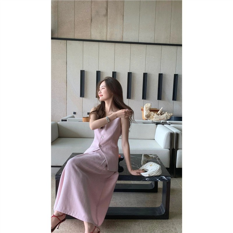 [재고] 프랑스 레트로 샤넬 스타일 핑크 민소매 조끼 스커트 세트 우아한 여성 2025 새로운