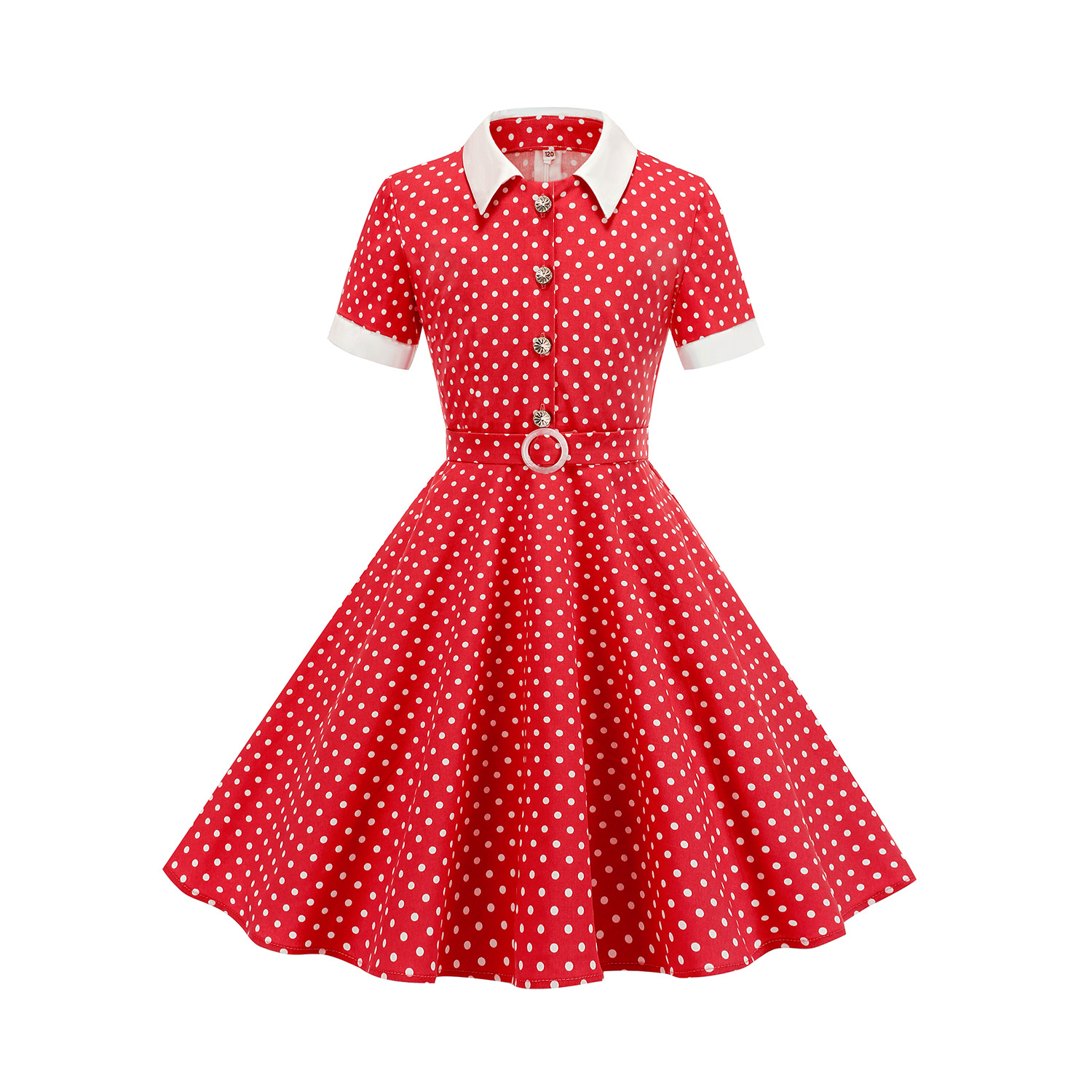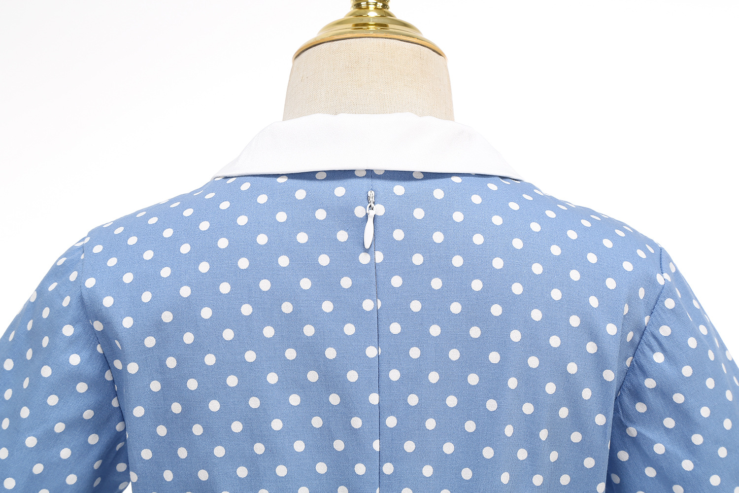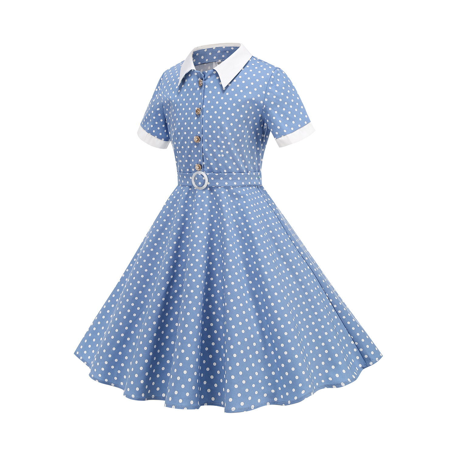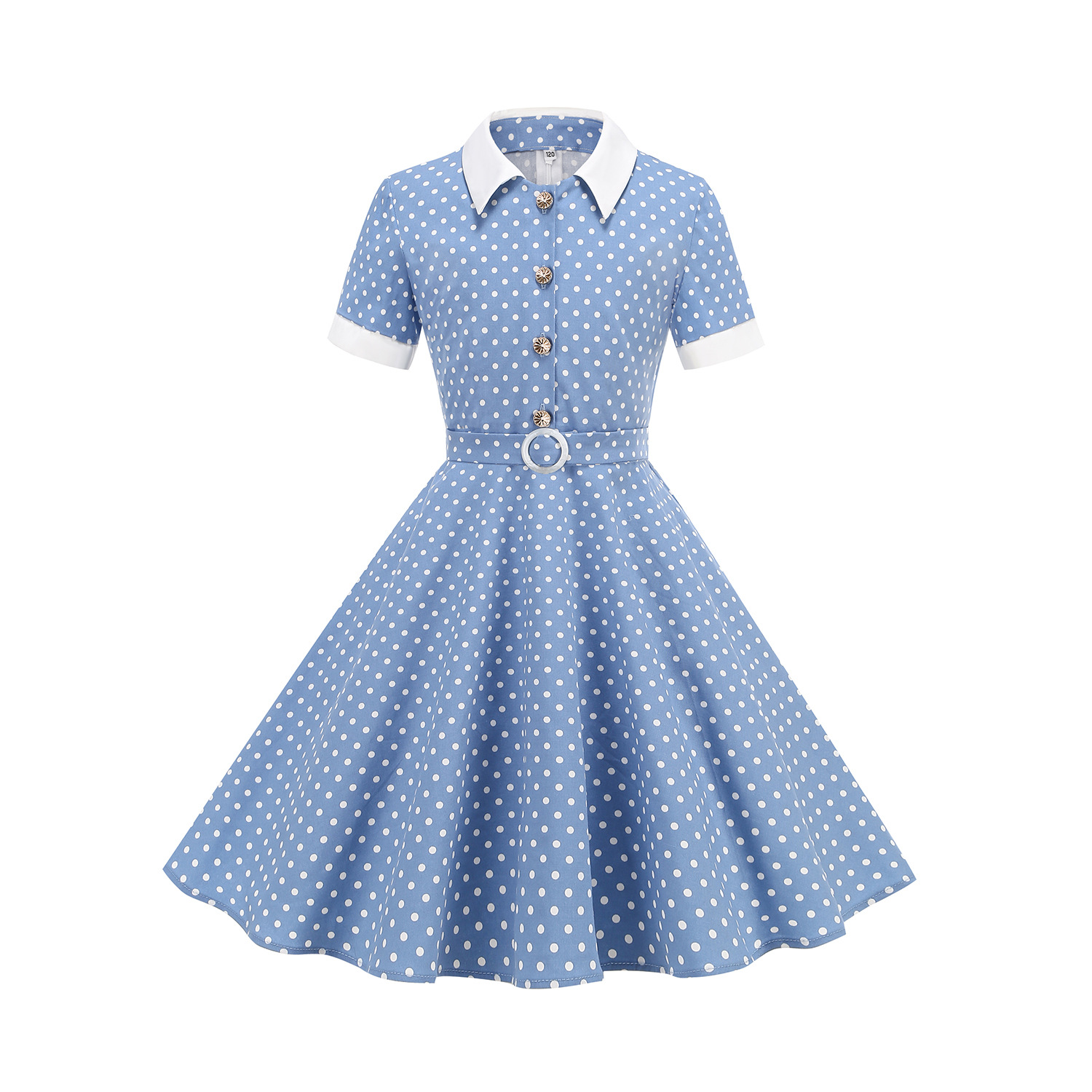 헵번 포트 스타일 빈티지 옷깃 슬림 핏 폴라 뾰족한 레이스 업 걸스 원피스 코튼