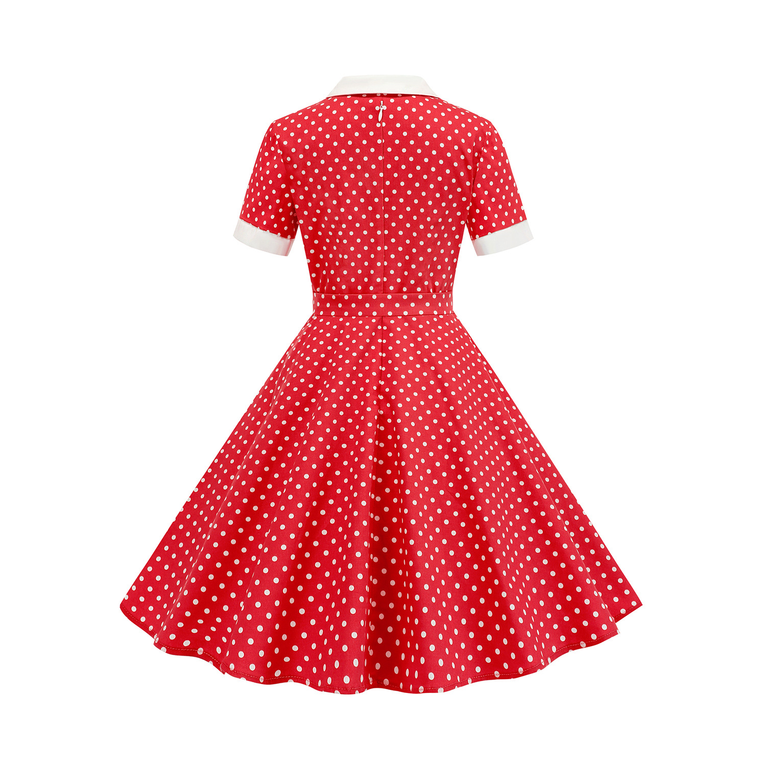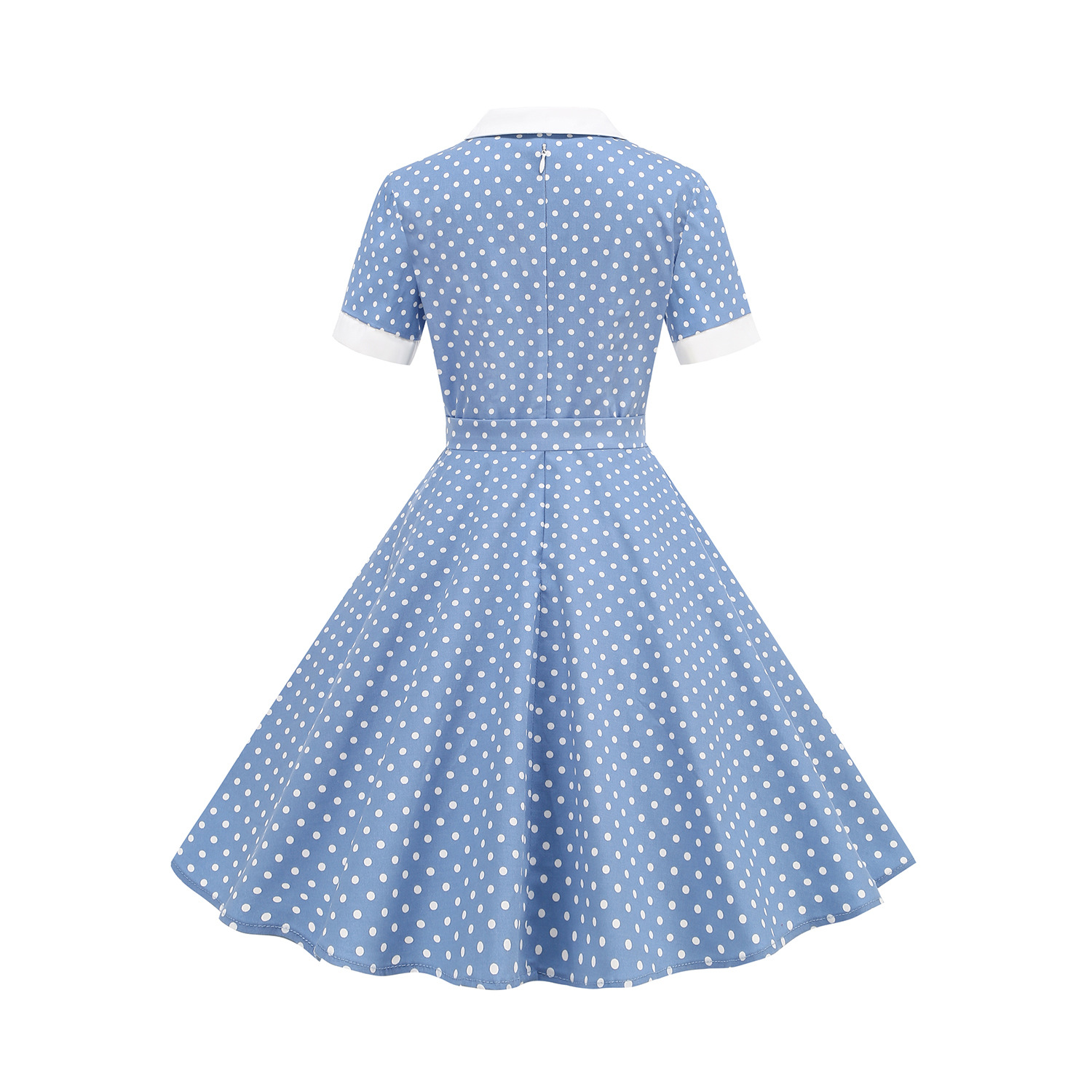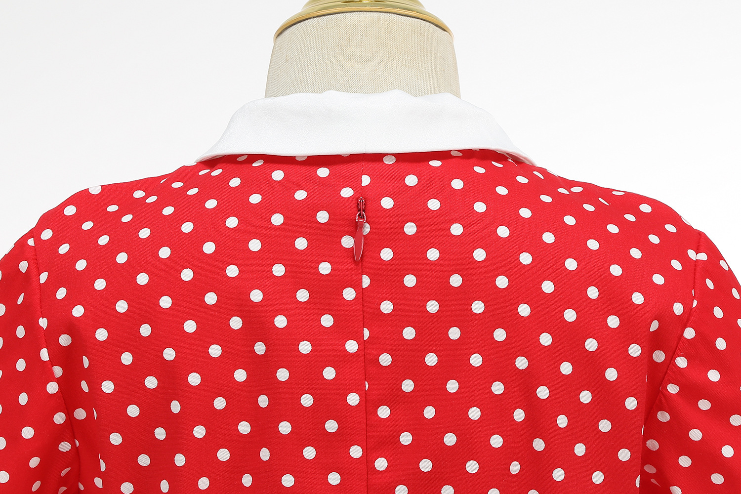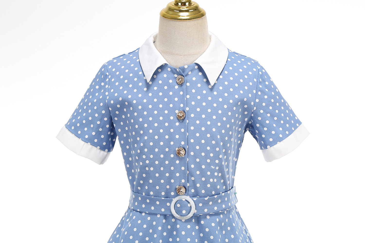 헵번 포트 스타일 빈티지 옷깃 슬림 핏 폴라 뾰족한 레이스 업 걸스 원피스 코튼