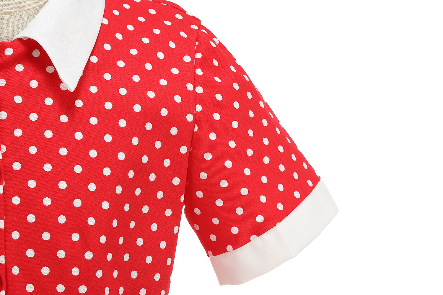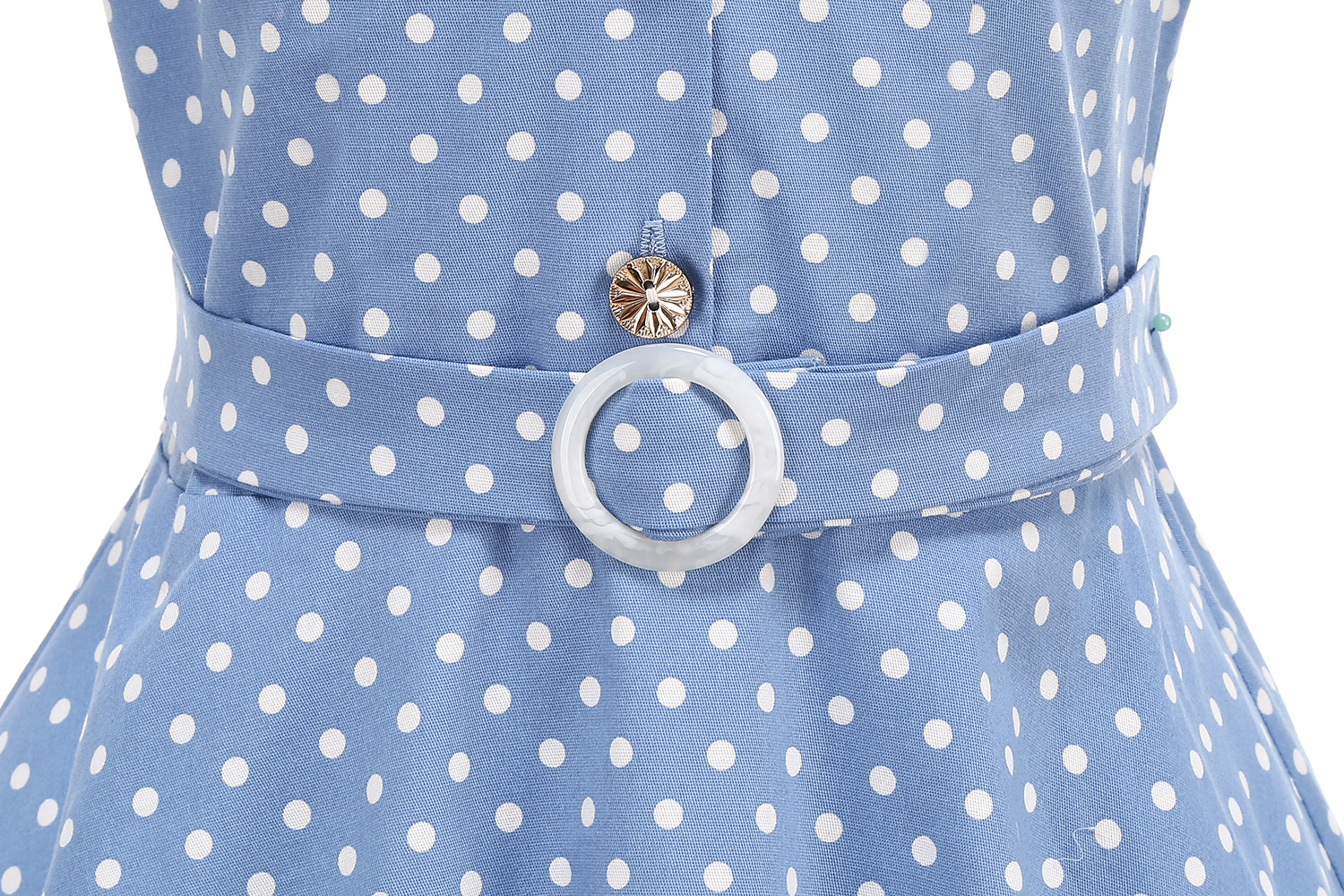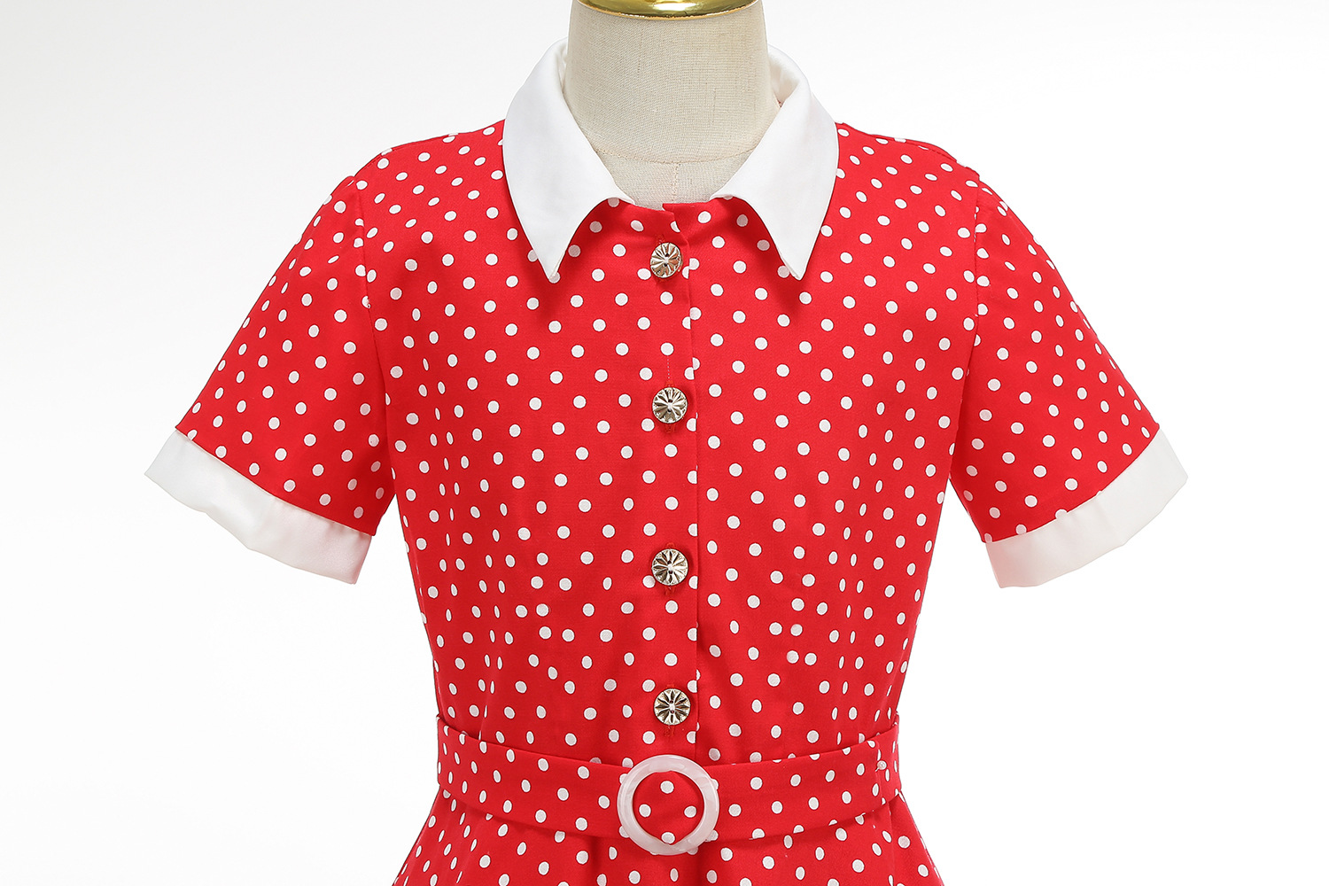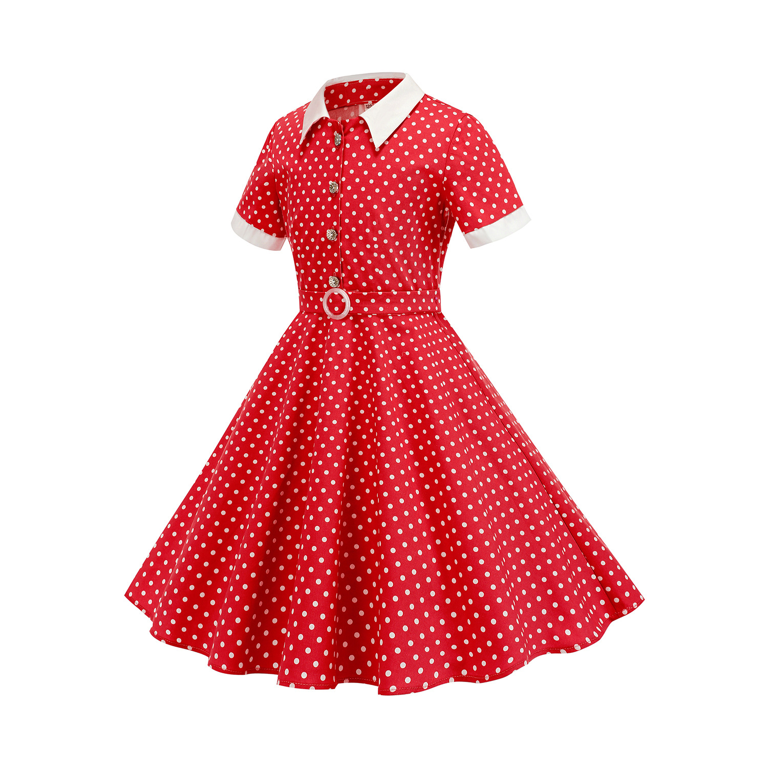헵번 포트 스타일 빈티지 옷깃 슬림 핏 폴라 뾰족한 레이스 업 걸스 원피스 코튼