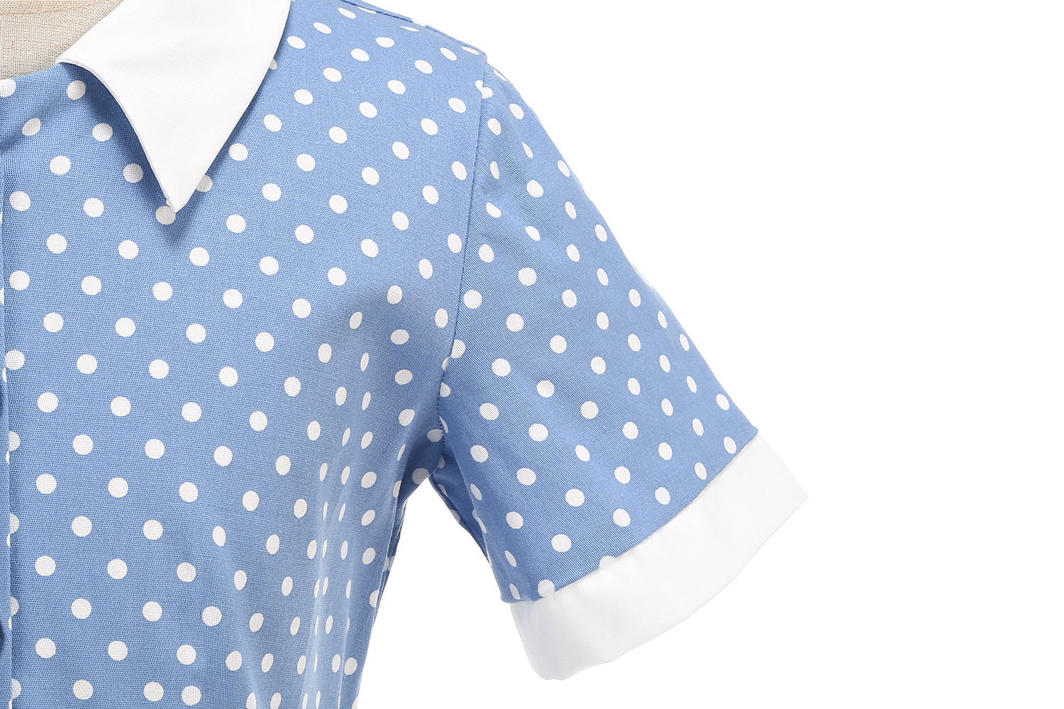 헵번 포트 스타일 빈티지 옷깃 슬림 핏 폴라 뾰족한 레이스 업 걸스 원피스 코튼스토어 가기