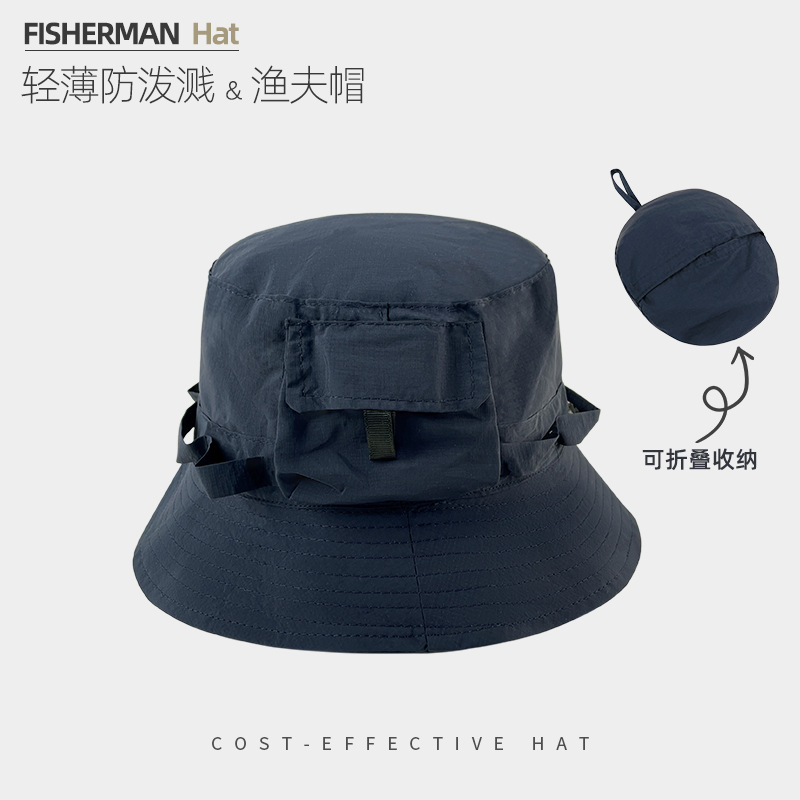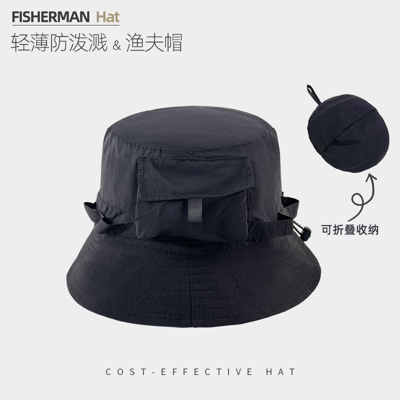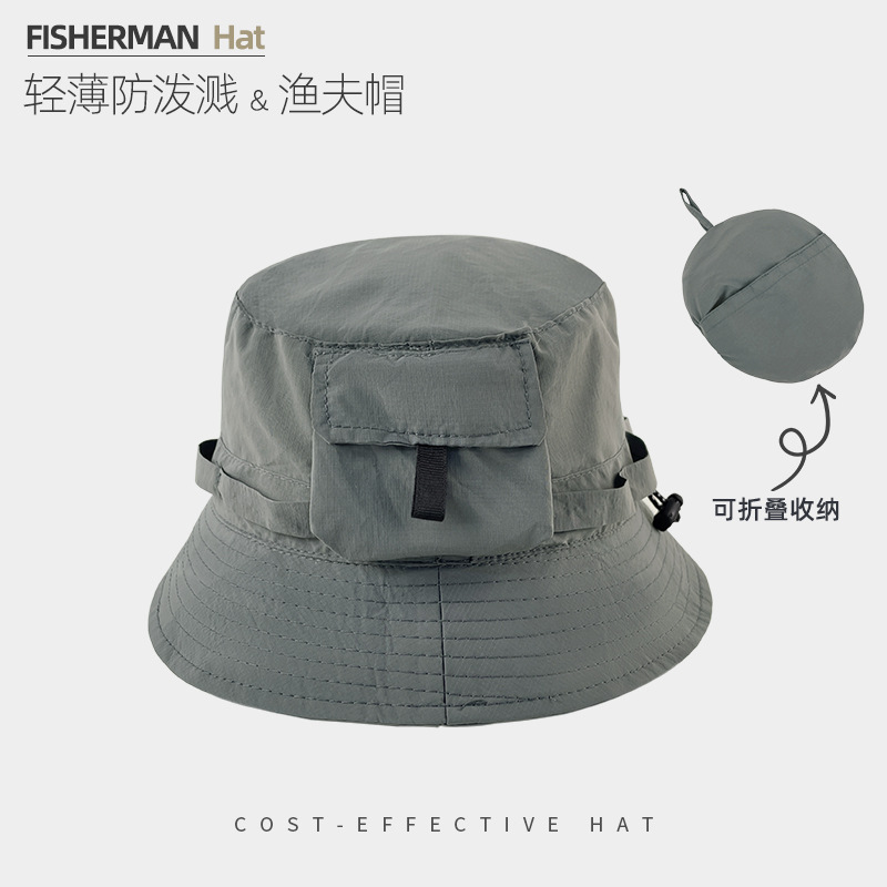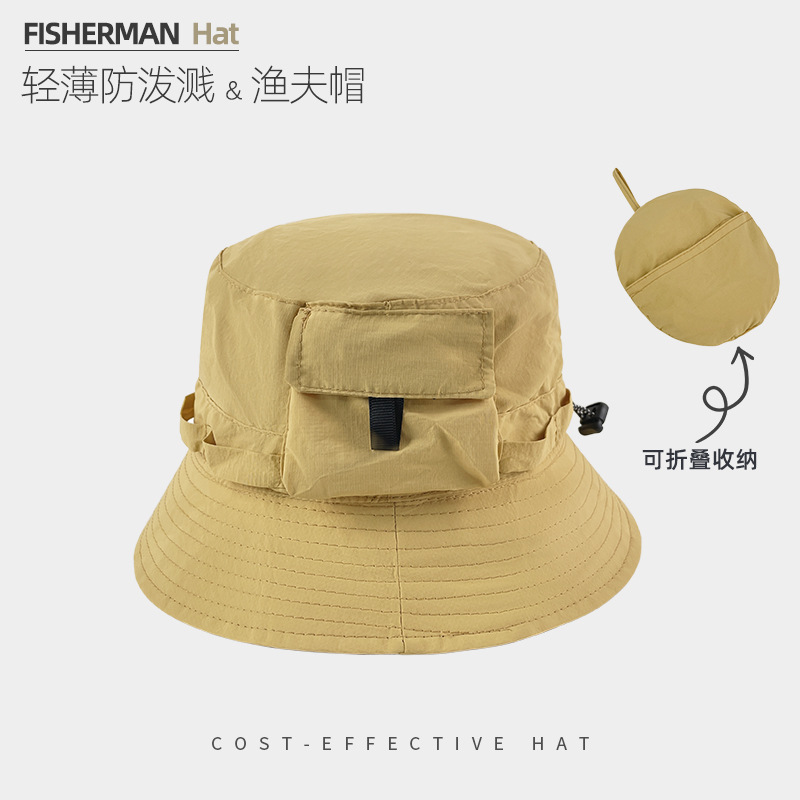 日系格子卷边渔夫帽子女夏季大帽檐速干遮阳防晒帽时尚显脸小盆帽