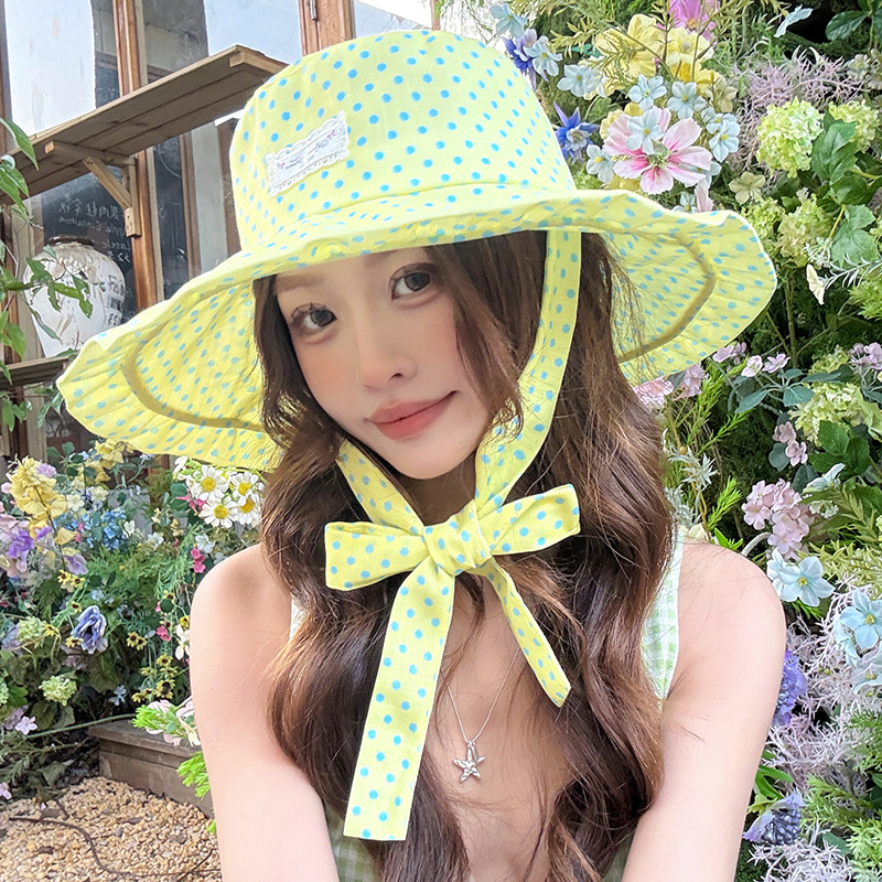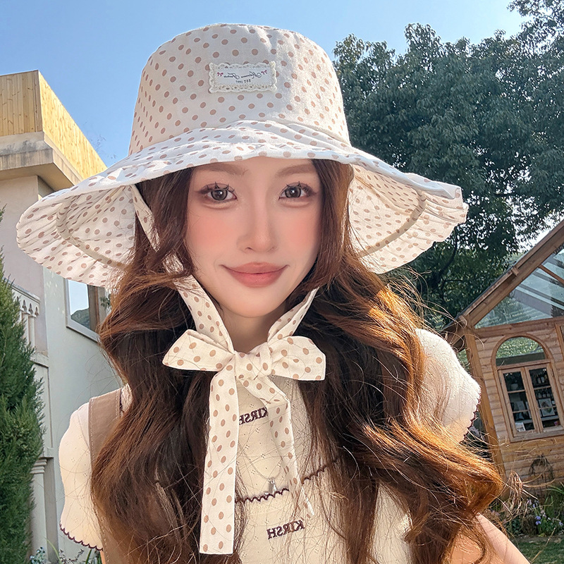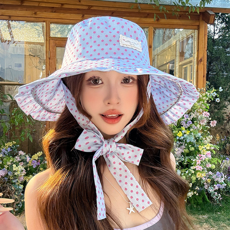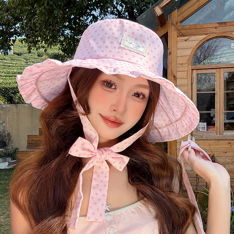 韩版波点大檐渔夫帽子女春夏季遮阳帽可爱蝴蝶结显脸小百搭防晒帽