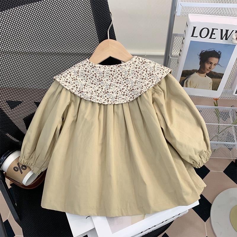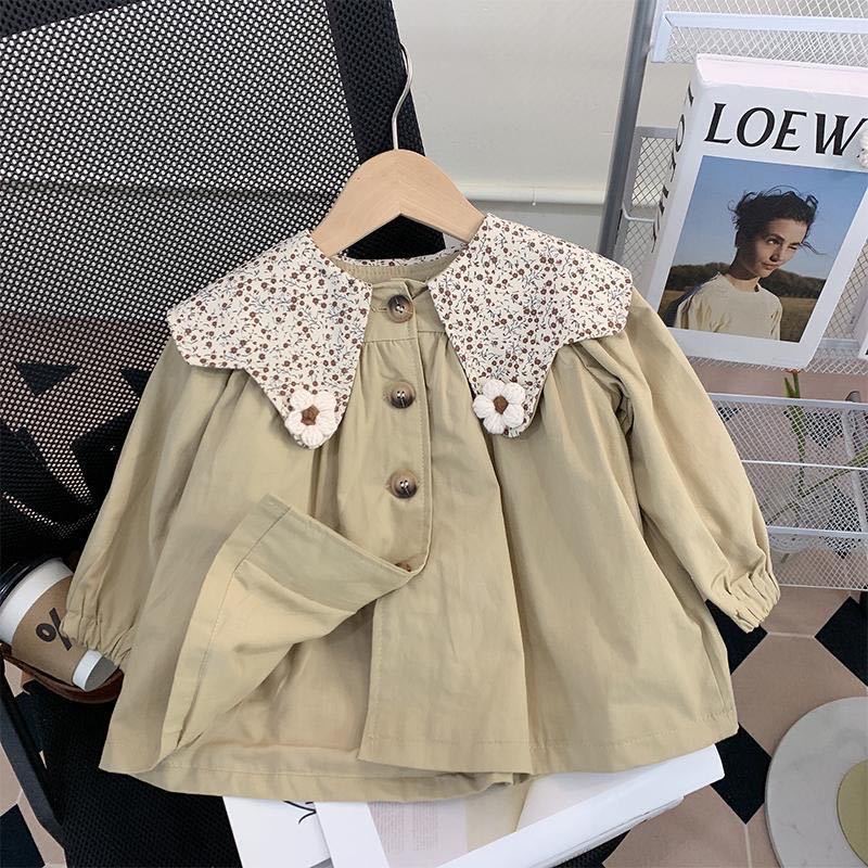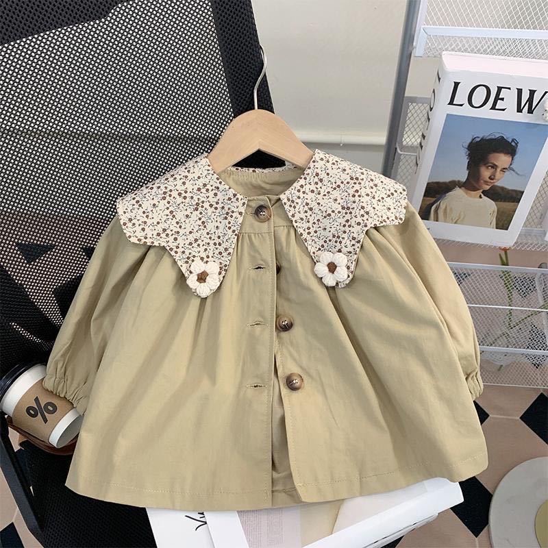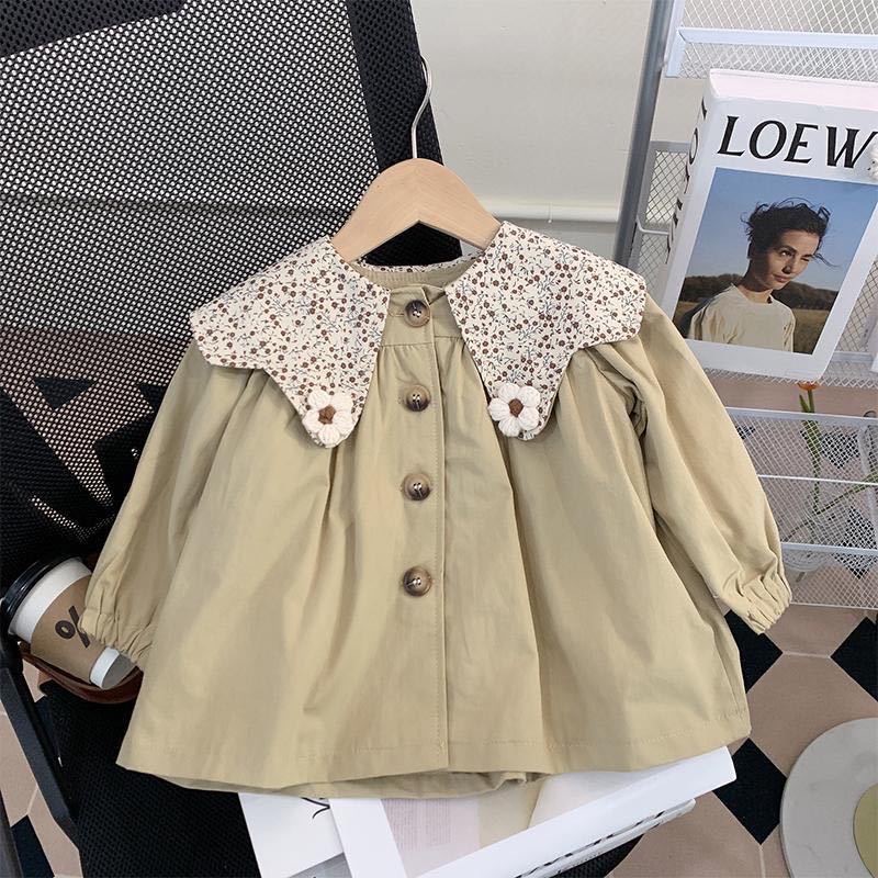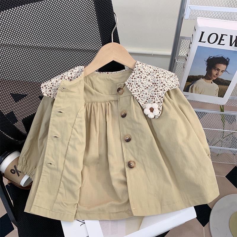 여자 2025 아기 소녀 봄, 가을 한국 스타일 카키색 겉옷 어린이 유행 꽃 인형 칼라 윈드 브레이커 재킷스토어 가기