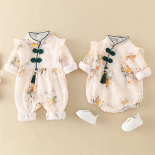 2026女童汉服碎花爬服中国风旗袍包屁衣新生儿春款连体衣满月哈衣