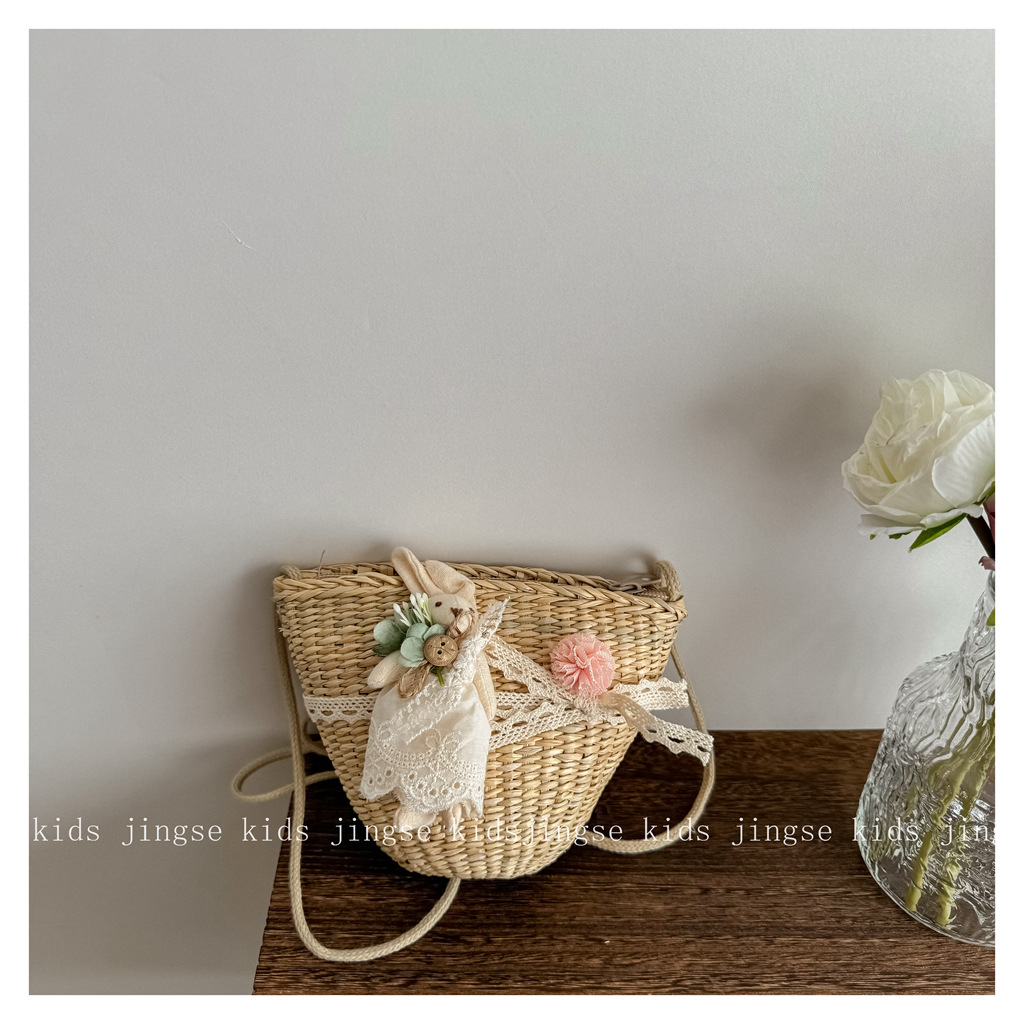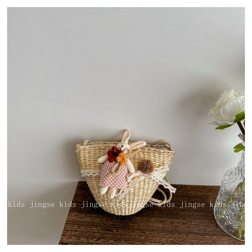 • 밀짚 가방 레이스 스커트 토끼 (어린이)