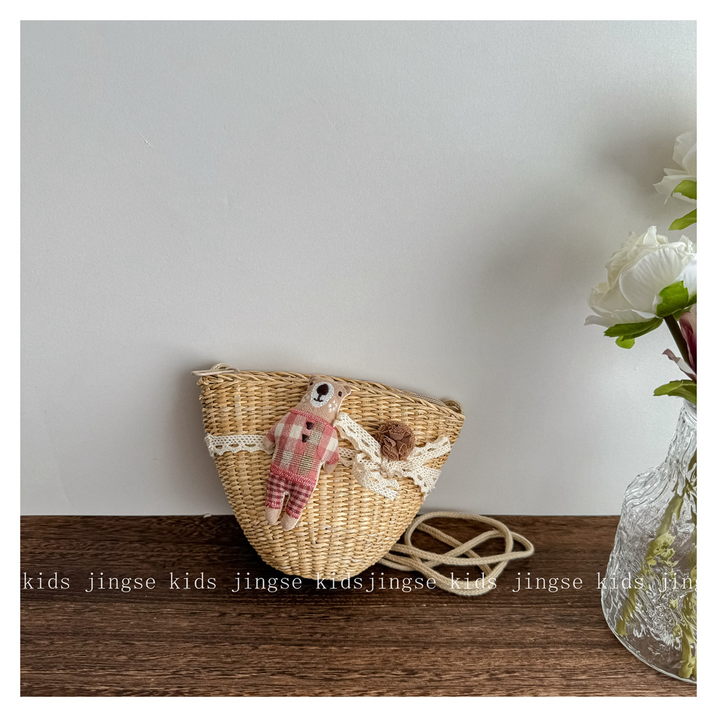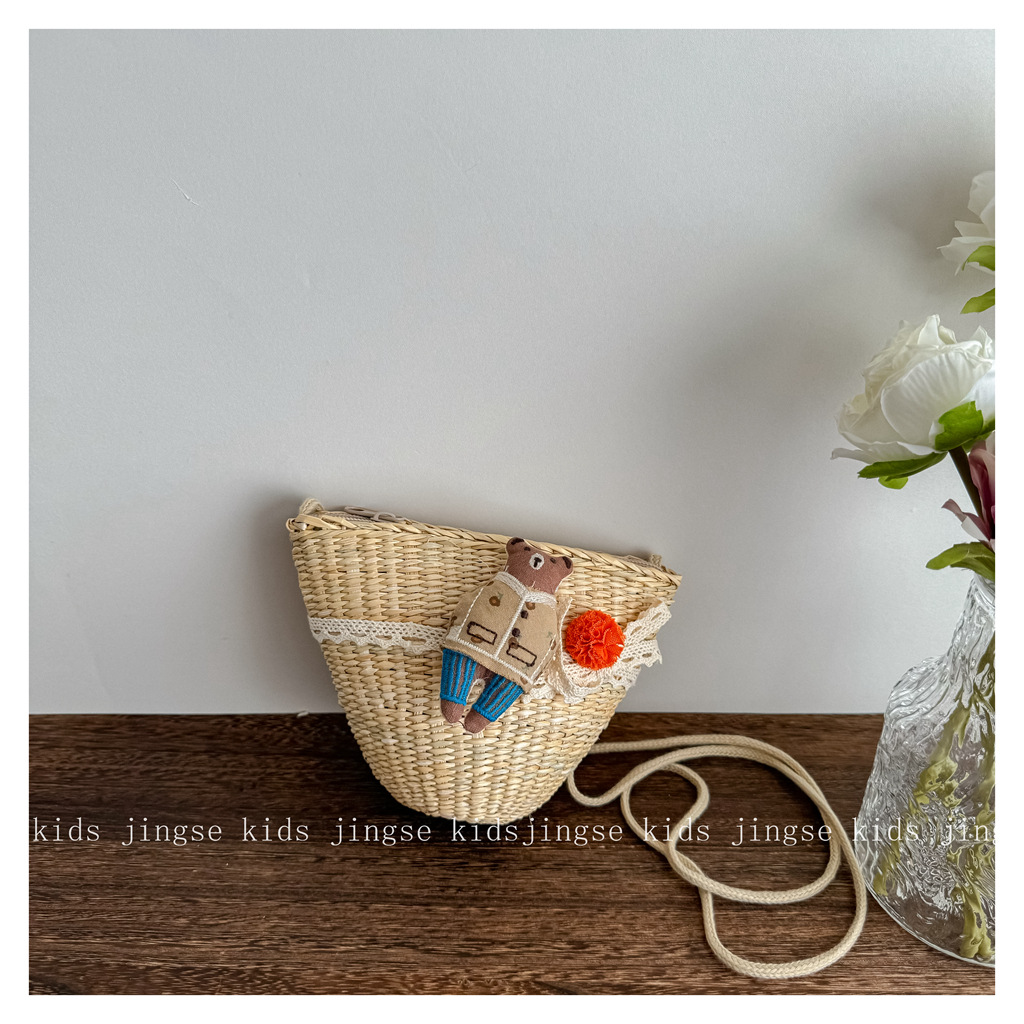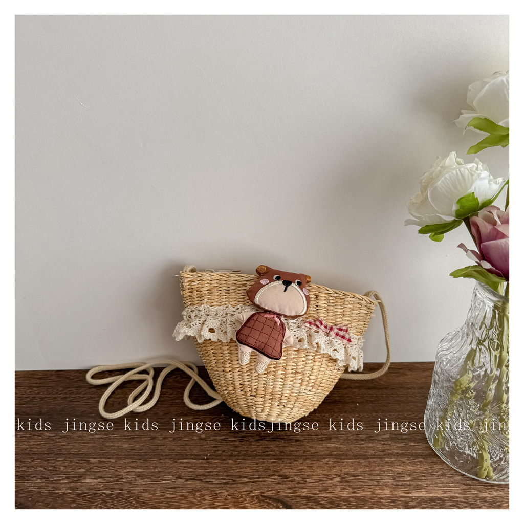 새로운 어린이 밀짚 가방 봄과 여름 소녀 크로스 바디 가방 공주 한국어 버전 귀여운 어린이 아기 소녀 동전 지갑스토어 가기