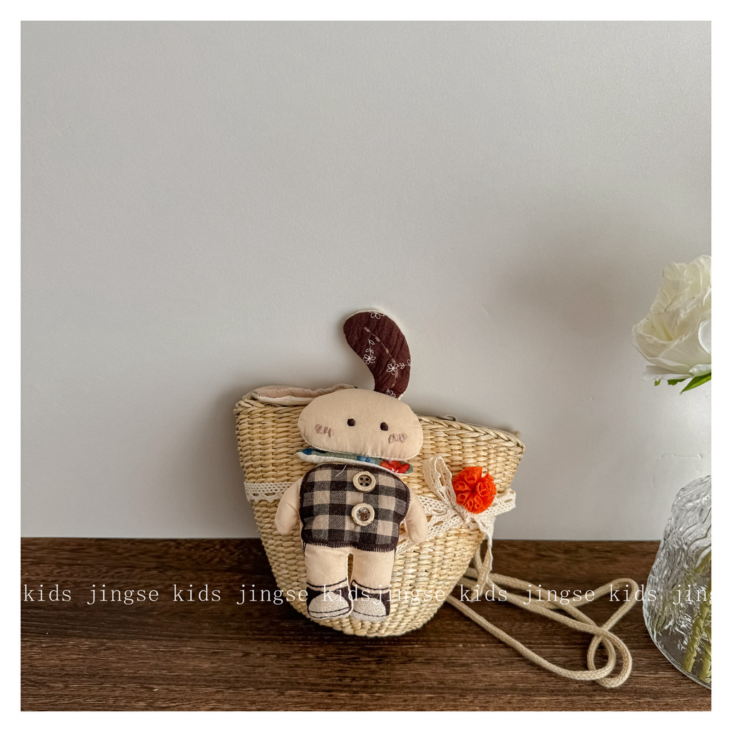• 밀짚가방 체크무늬 스커트 토끼(어린이)