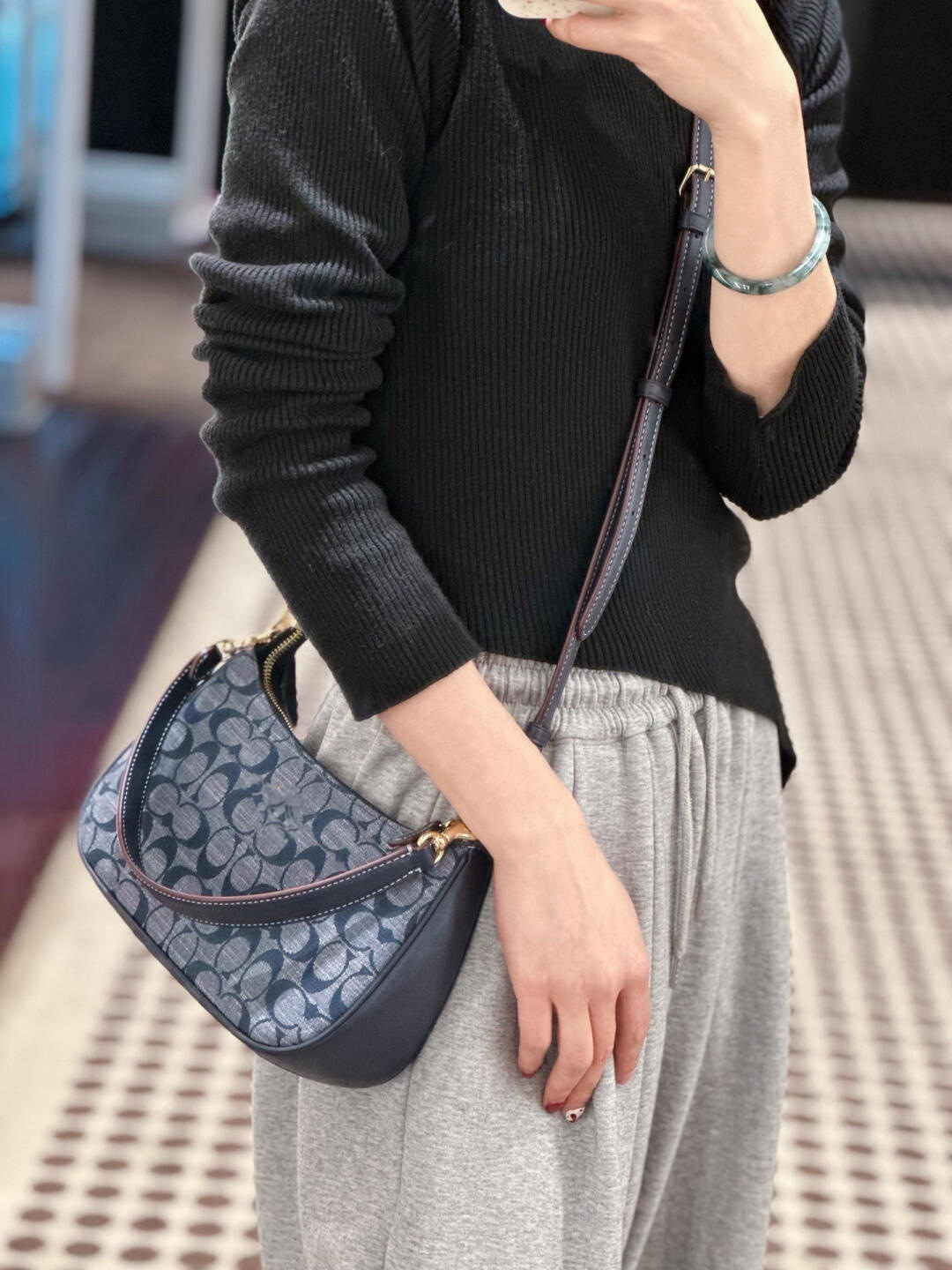 Kou Jia High Version Old Flower Teri Underarm Bag 유행 올 매치 숄더 크로스 바디 초승달 가방 여성용 마작 가방 핸드백스토어 가기
