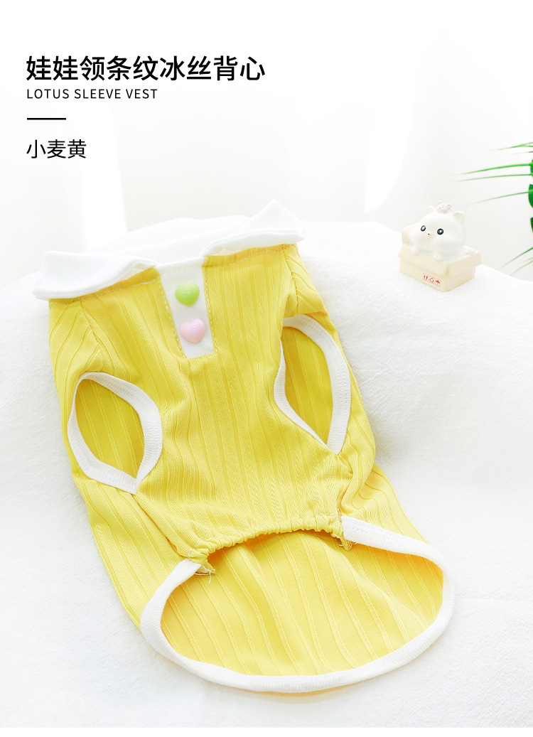 • 밀 노란색 인형 칼라 줄무늬 얼음 실크 조끼