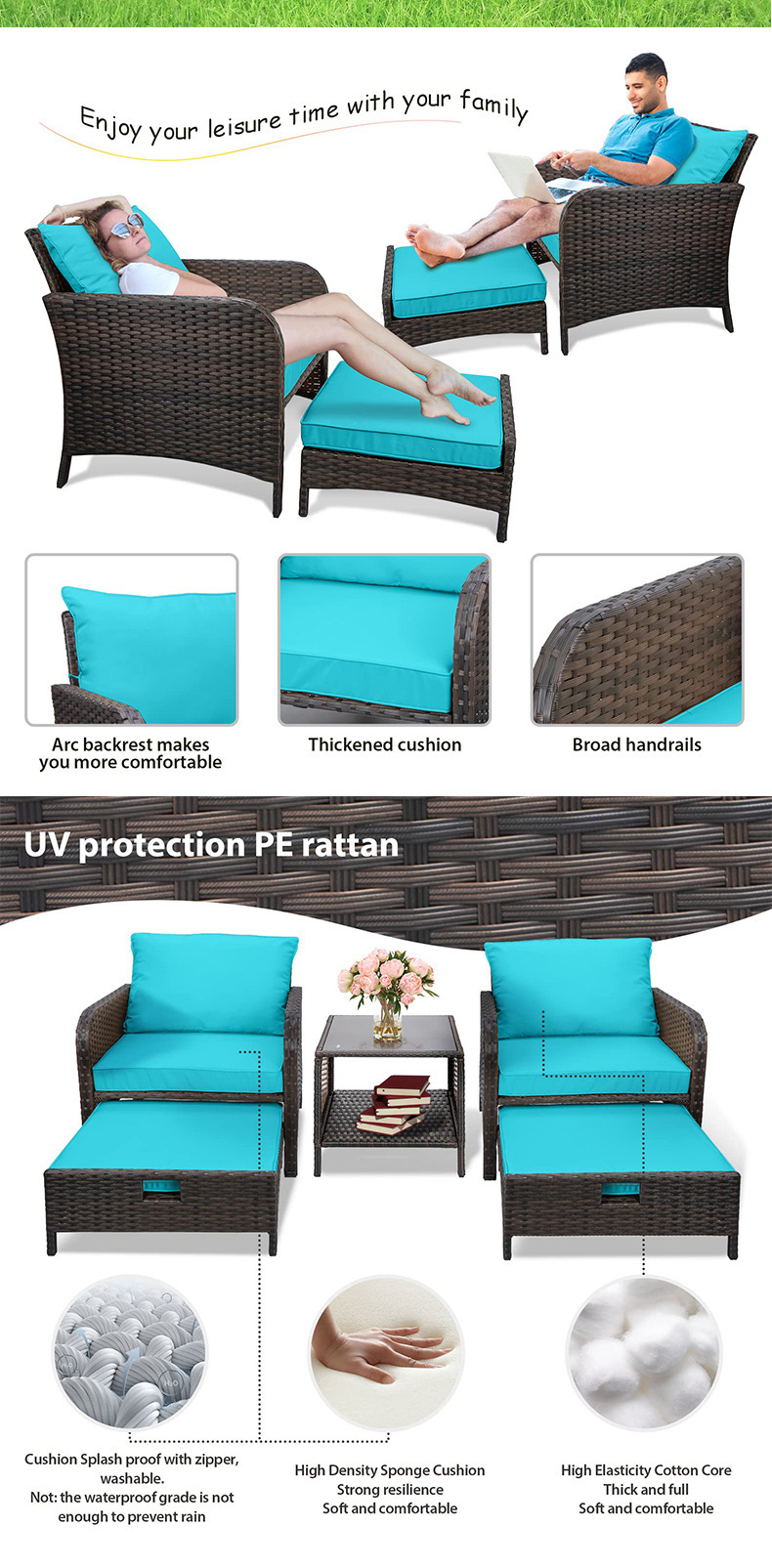 북유럽 야외 안뜰 레저 소파 방수 및 자외선 차단제 발코니 테이블 1개와 의자 2개 등나무 티 테이블 등나무 의자 조합