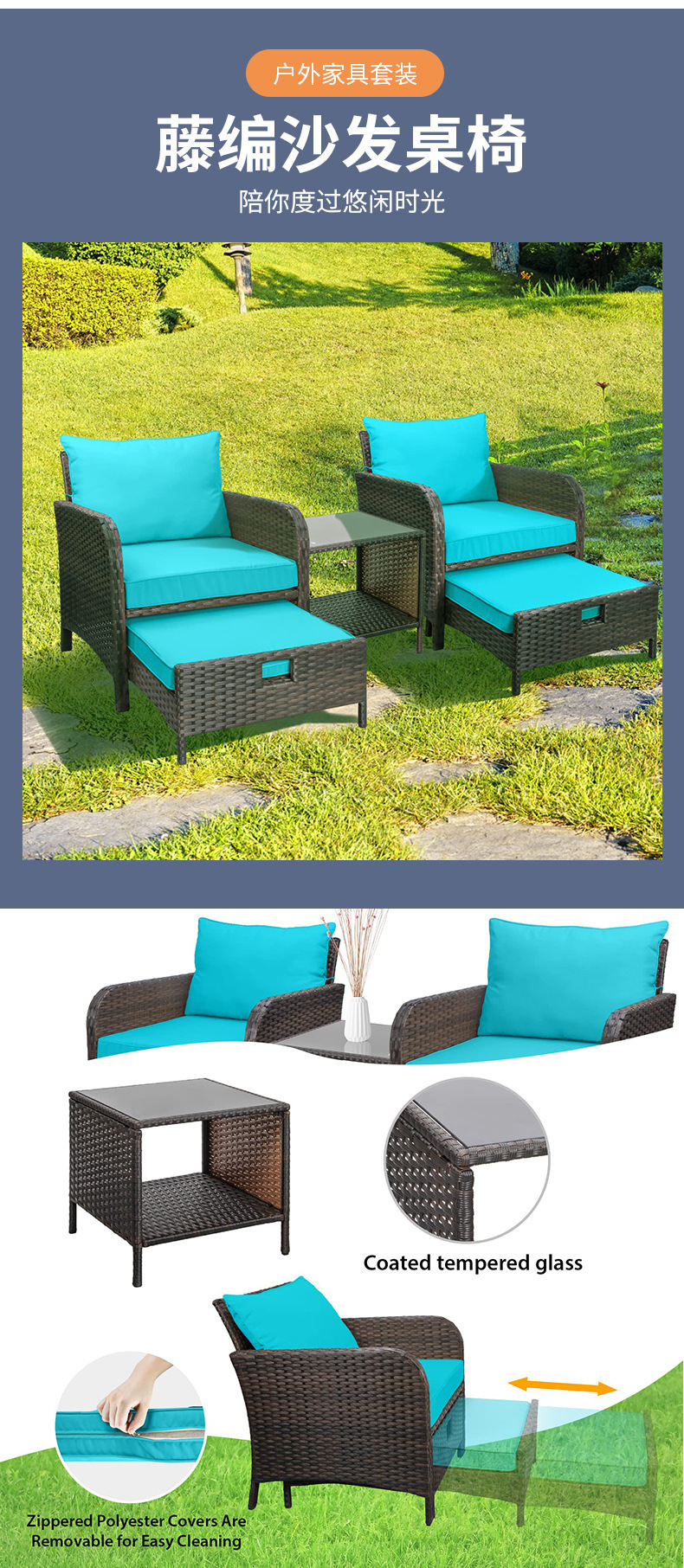 북유럽 야외 안뜰 레저 소파 방수 및 자외선 차단제 발코니 테이블 1개와 의자 2개 등나무 티 테이블 등나무 의자 조합스토어 가기