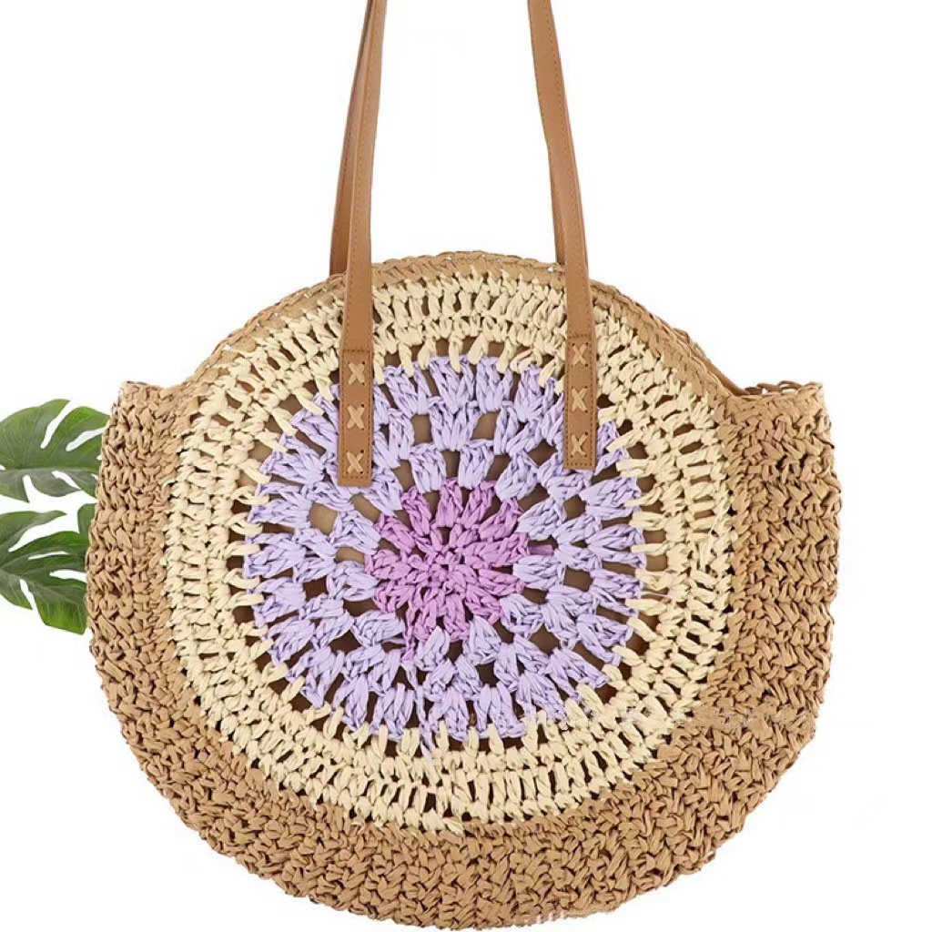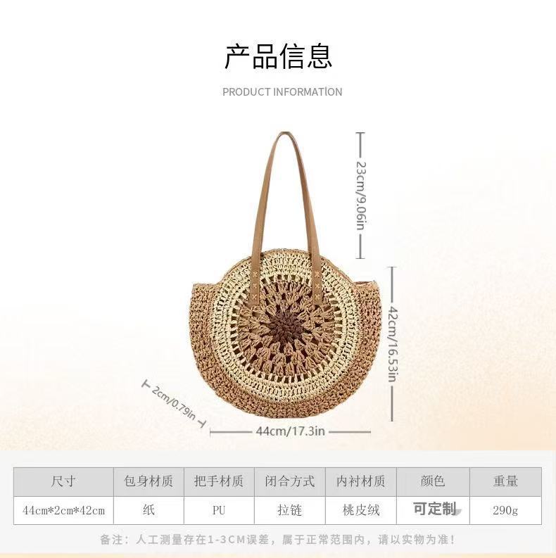 원형 간단한 종이 로프 원 숄더 비치 밀짚 가방 짠 가방 밀짚 가방 종이 가방 패션 여성 가방 핸드백