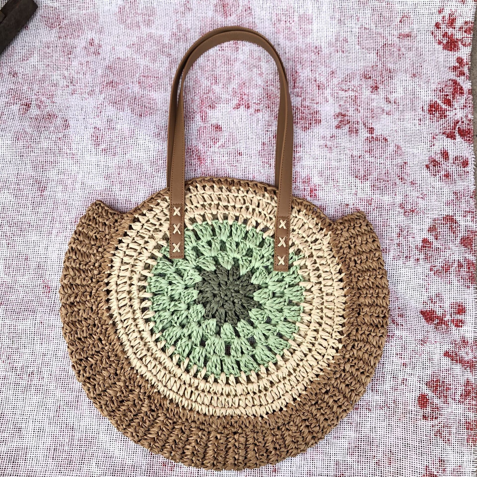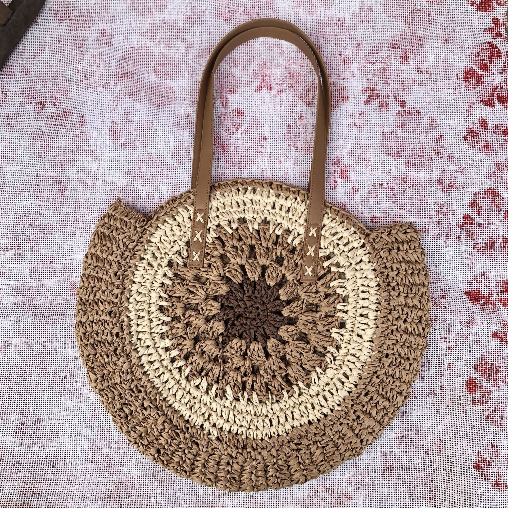 원형 간단한 종이 로프 원 숄더 비치 밀짚 가방 짠 가방 밀짚 가방 종이 가방 패션 여성 가방 핸드백스토어 가기