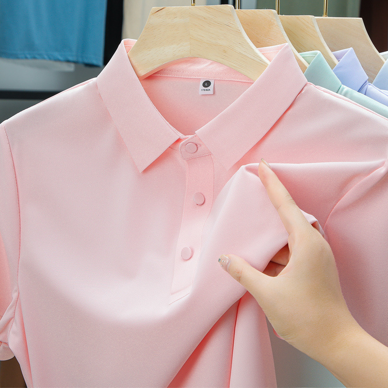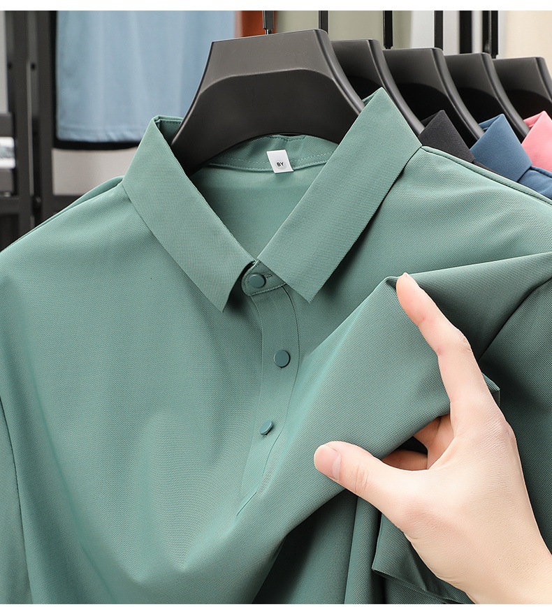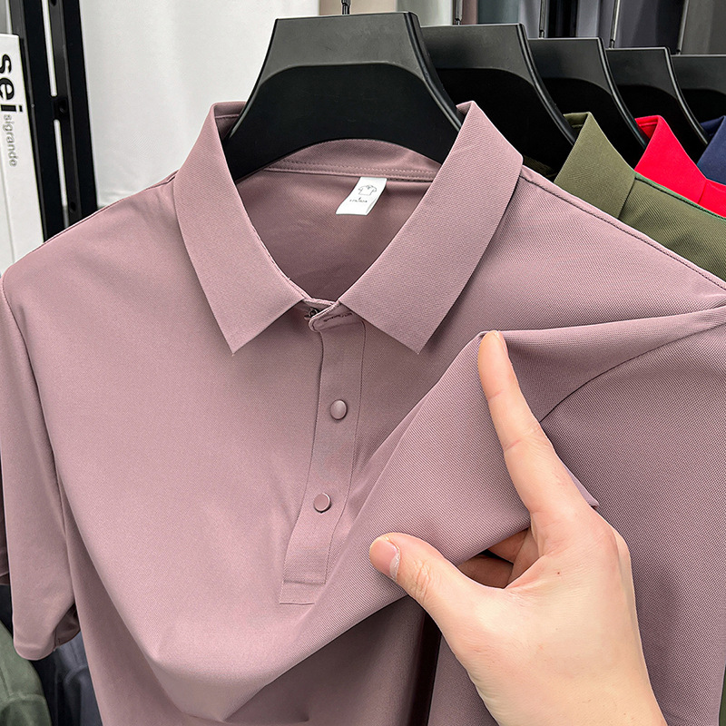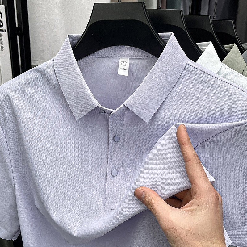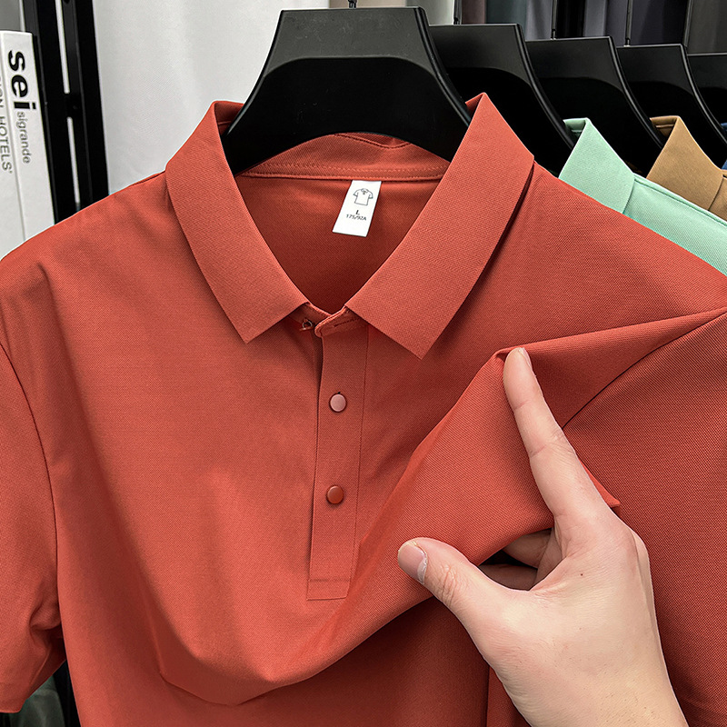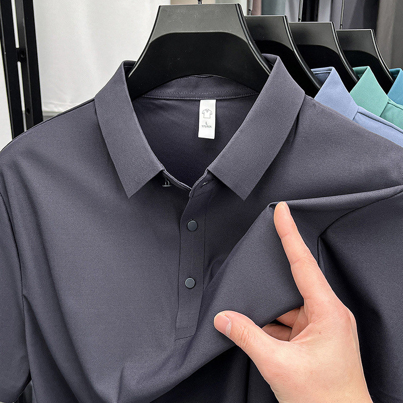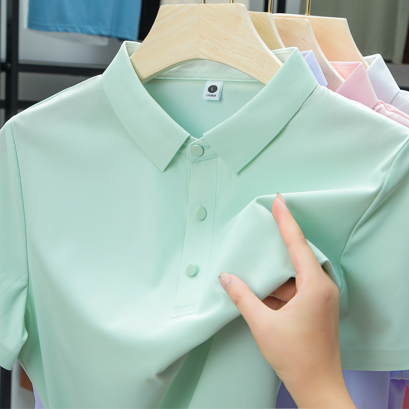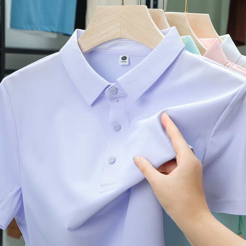 남성용 여름 반팔 티셔츠, 비즈니스 캐주얼 아이스 실크 라펠 폴로 셔츠, 남성용 및 여성용 심리스 티셔츠, 고품질스토어 가기